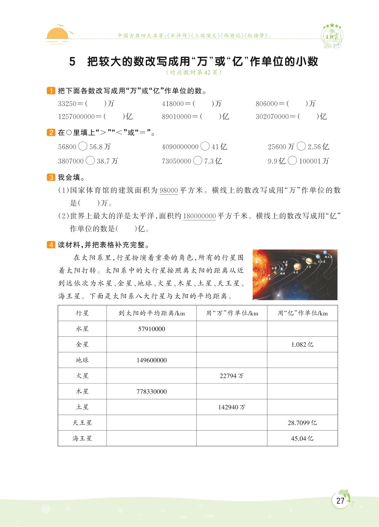 2022上册五年级数学苏教版 第三单元 小数的意义和性质——5 把较大的数改写成用“万”或“亿”作单位的小数
