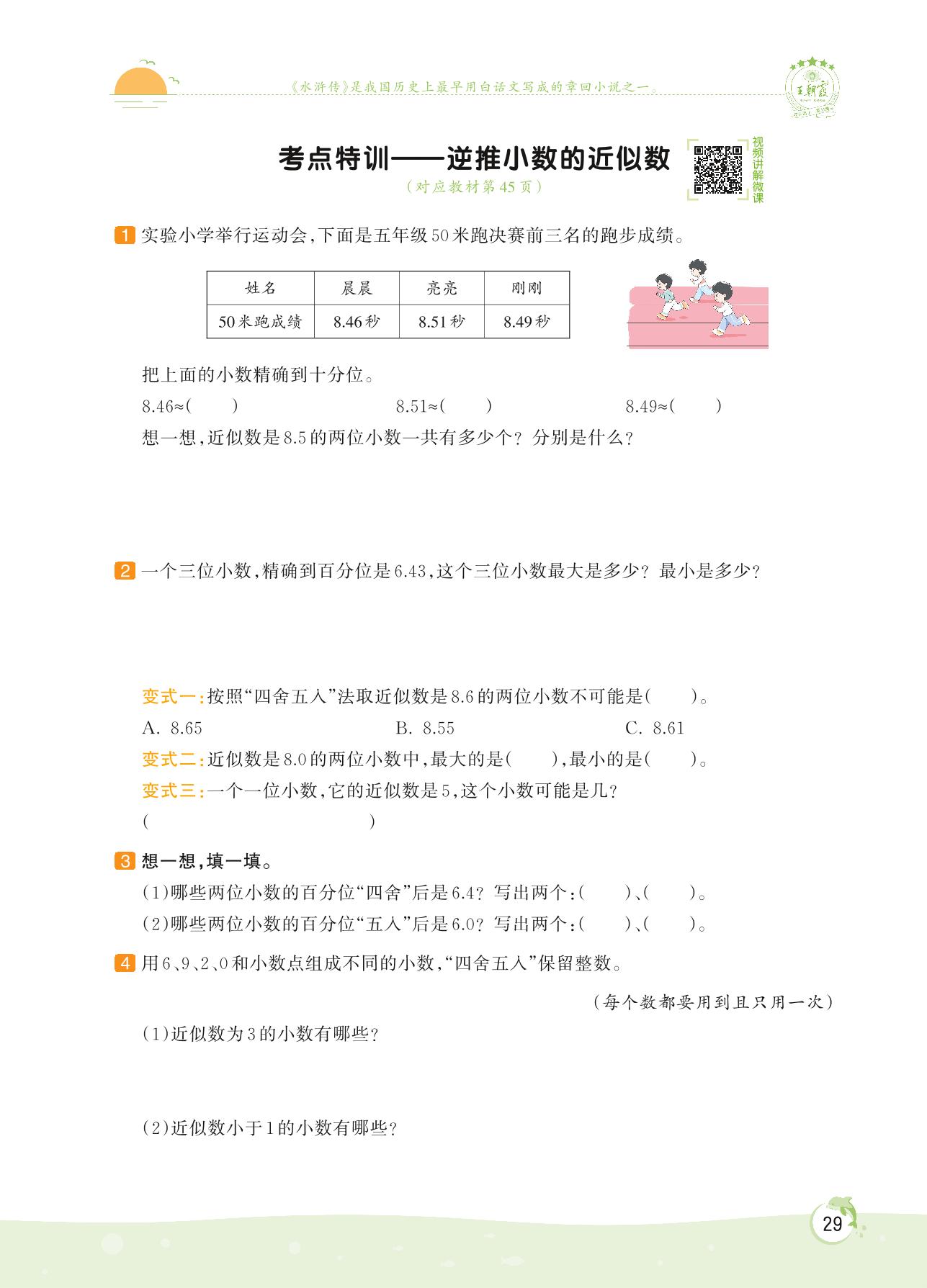 2022上册五年级数学苏教版 第三单元 小数的意义和性质——考点特训 逆推小数的近似数