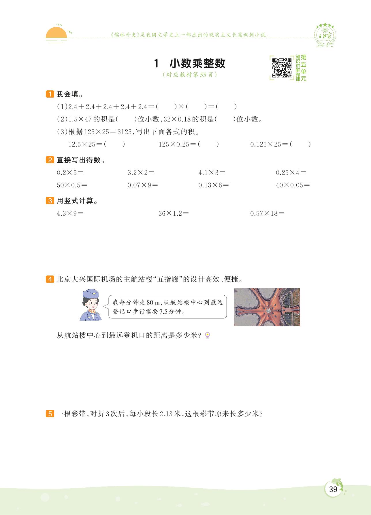 2022上册五年级数学苏教版 第五单元 小数乘法和除法——1 小数乘整数