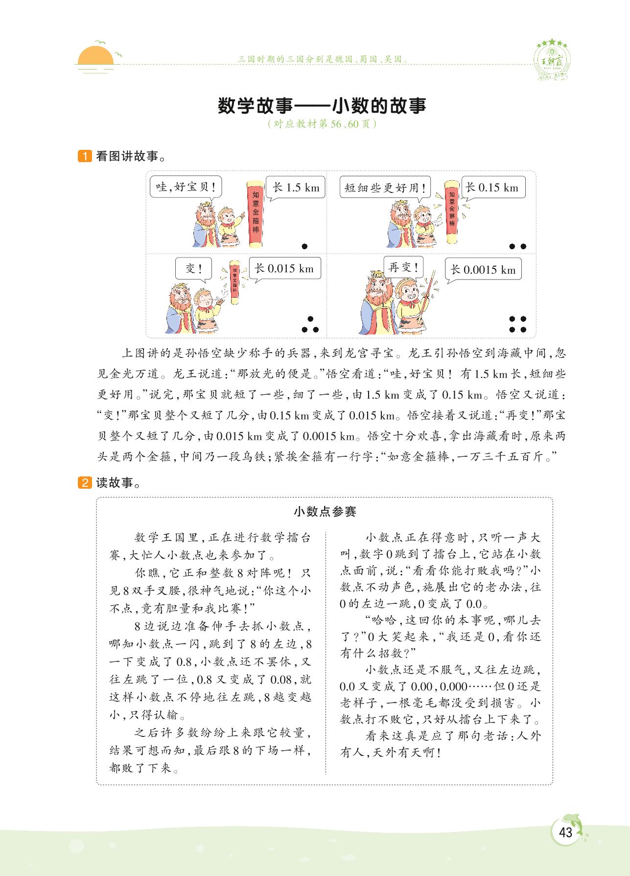 2022上册五年级数学苏教版 第五单元 小数乘法和除法——数学故事 小数的故事