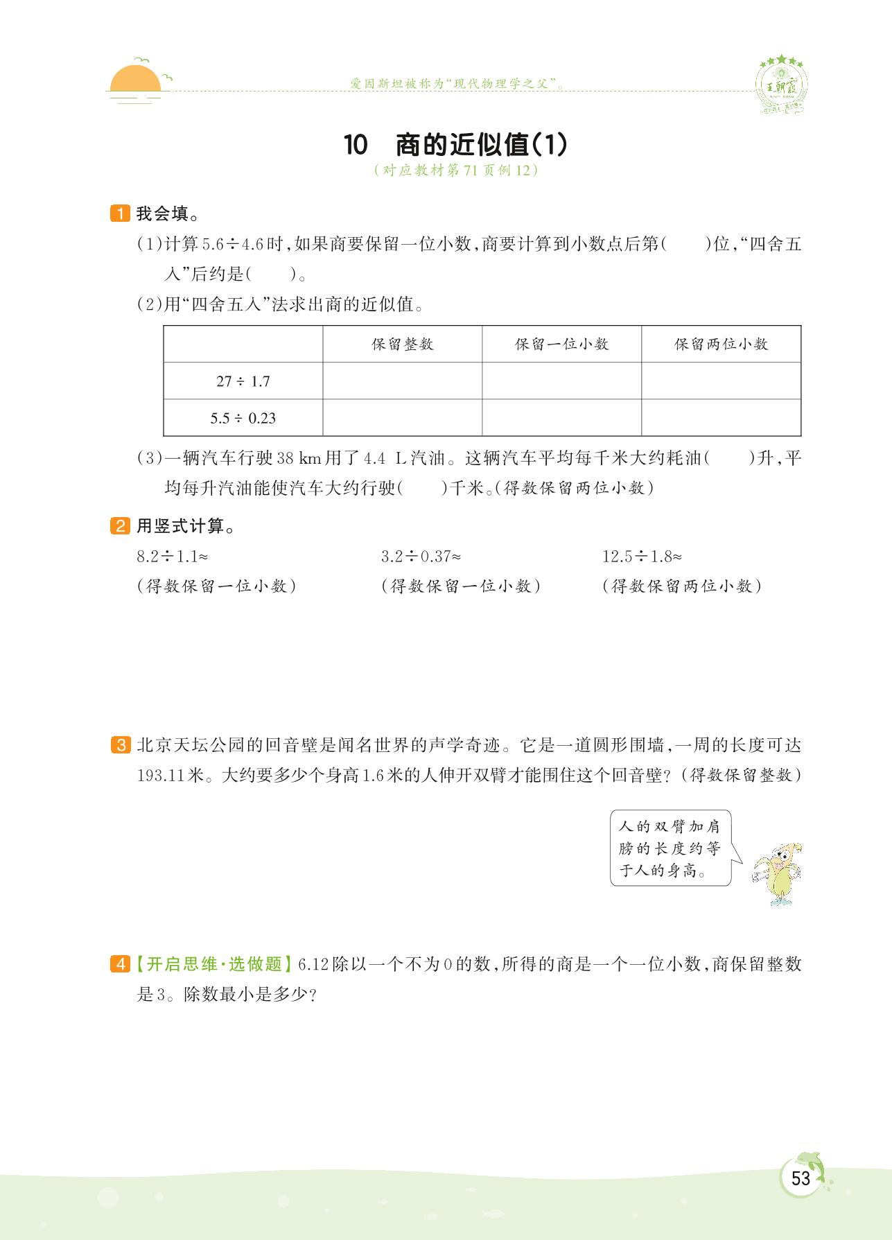 2022上册五年级数学苏教版 第五单元 小数乘法和除法——10 商的近似值(1)