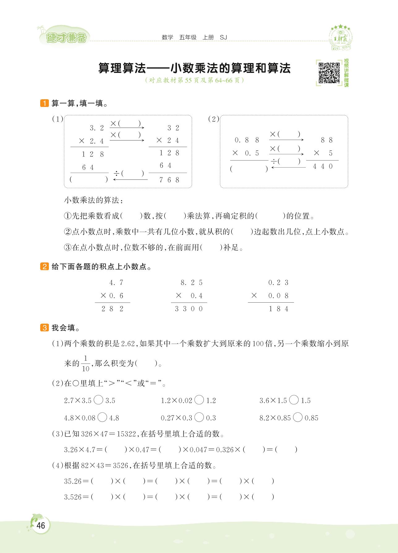 2022上册五年级数学苏教版 第五单元 小数乘法和除法——算理算法 小数乘法的算理和算法