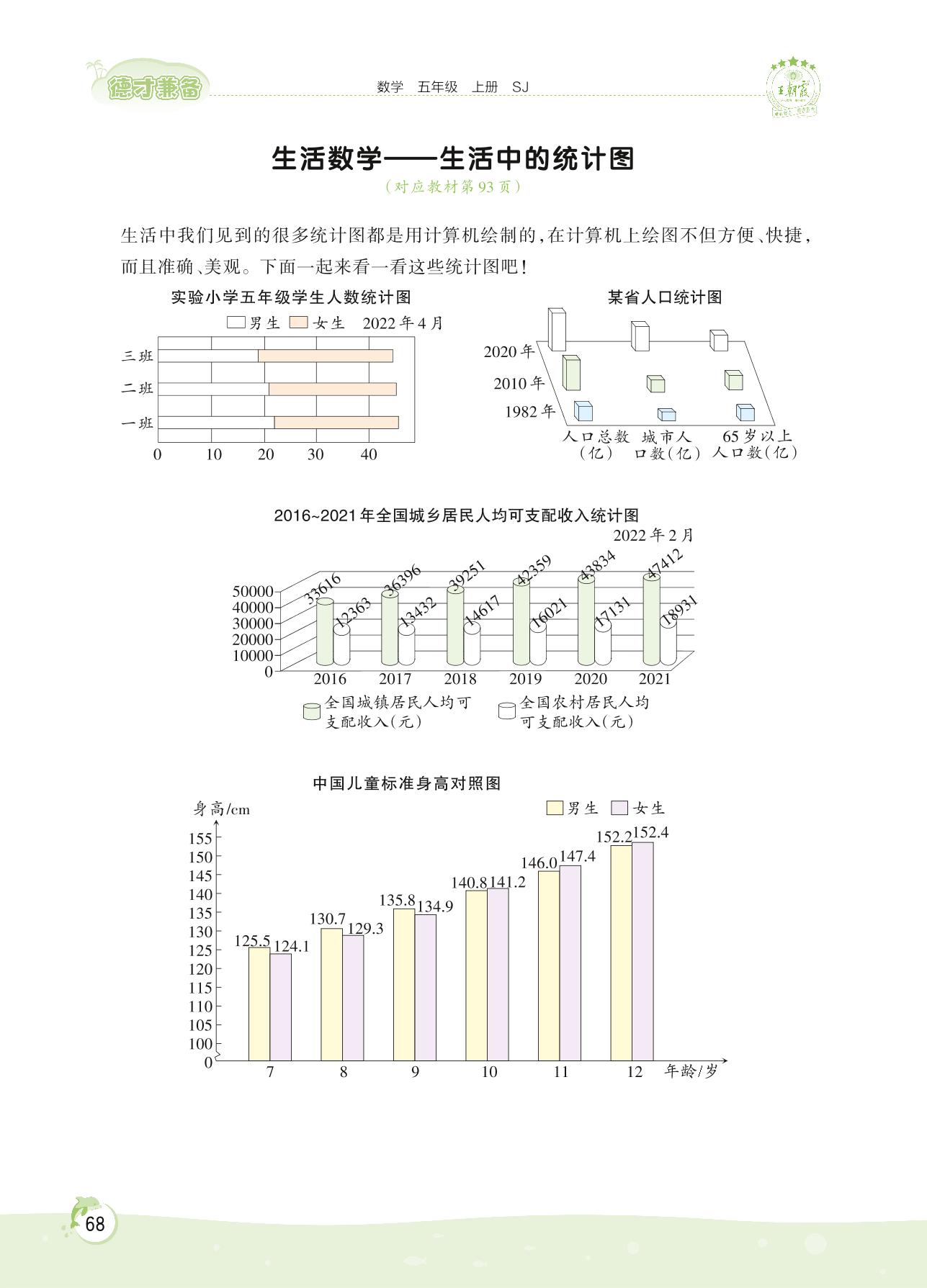 2022上册五年级数学苏教版 第六单元 统计表和条形统计图(二)——生活数学 生活中的统计图