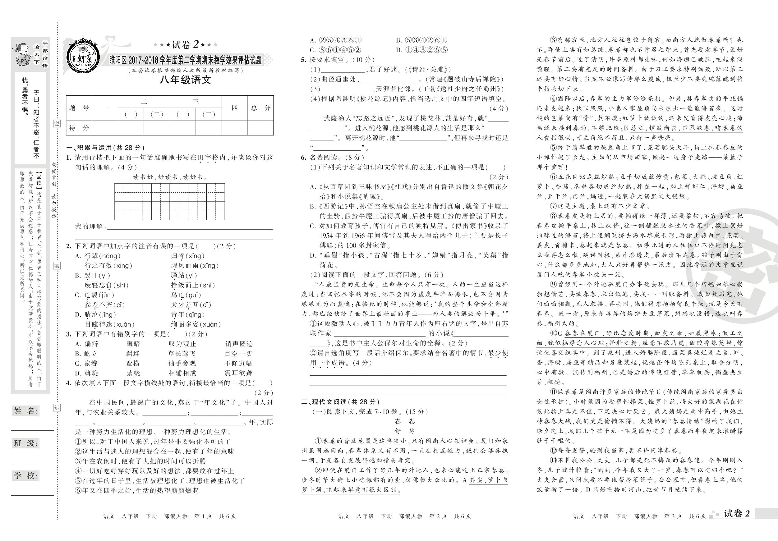 2017-2018学年第二学期商丘市睢阳区八年级语文试卷(人教版)【2】