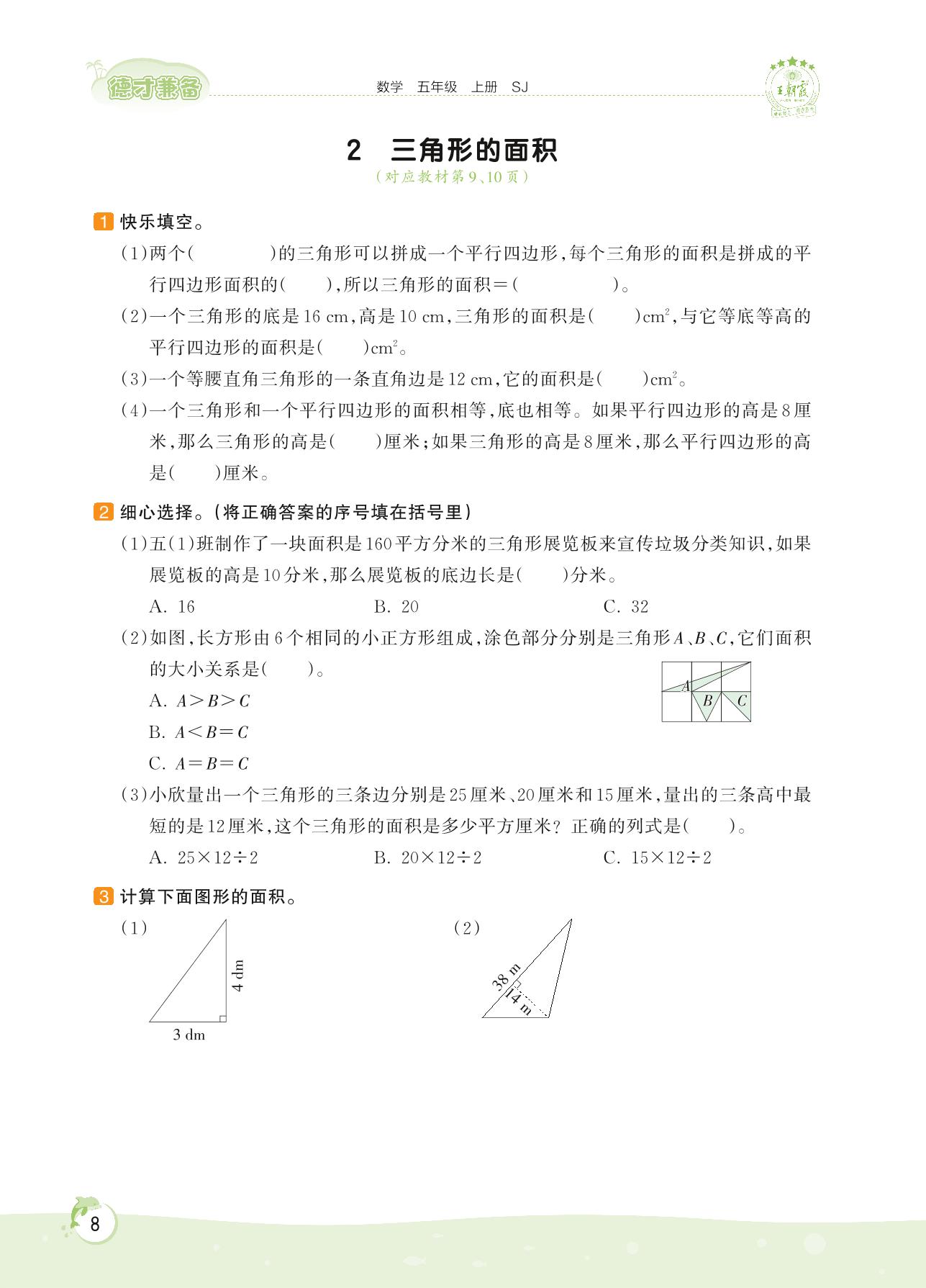 2022上册五年级数学苏教版 第二单元 多边形的面积——2 三角形的面积