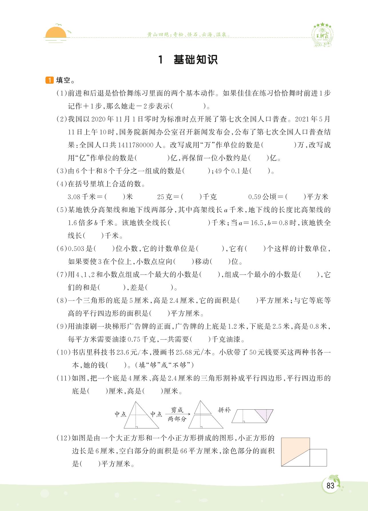 2022上册五年级数学苏教版 第九单元 整理与复习——1 基础知识