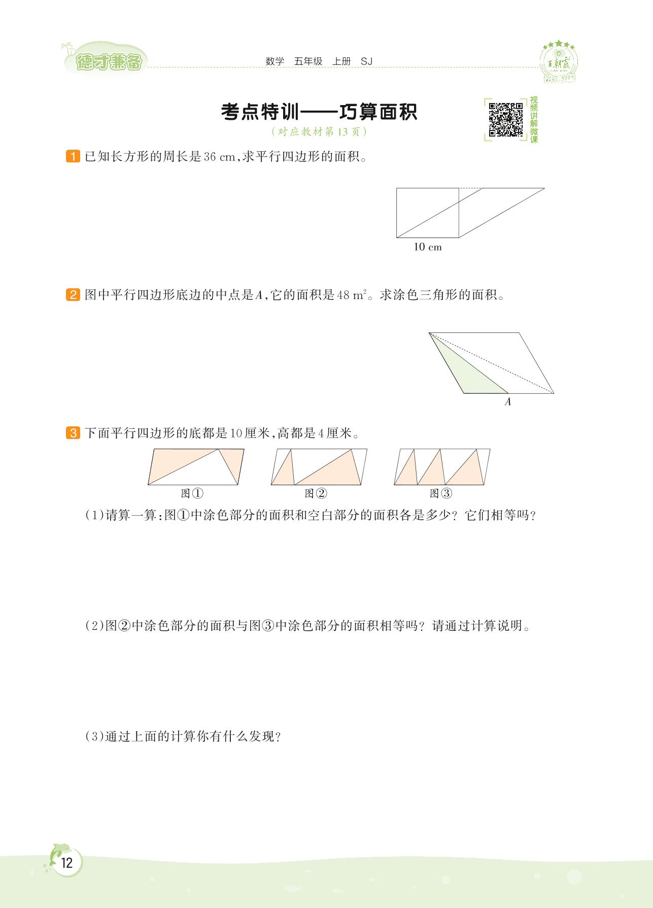 2022上册五年级数学苏教版 第二单元 多边形的面积——考点特训 巧算面积
