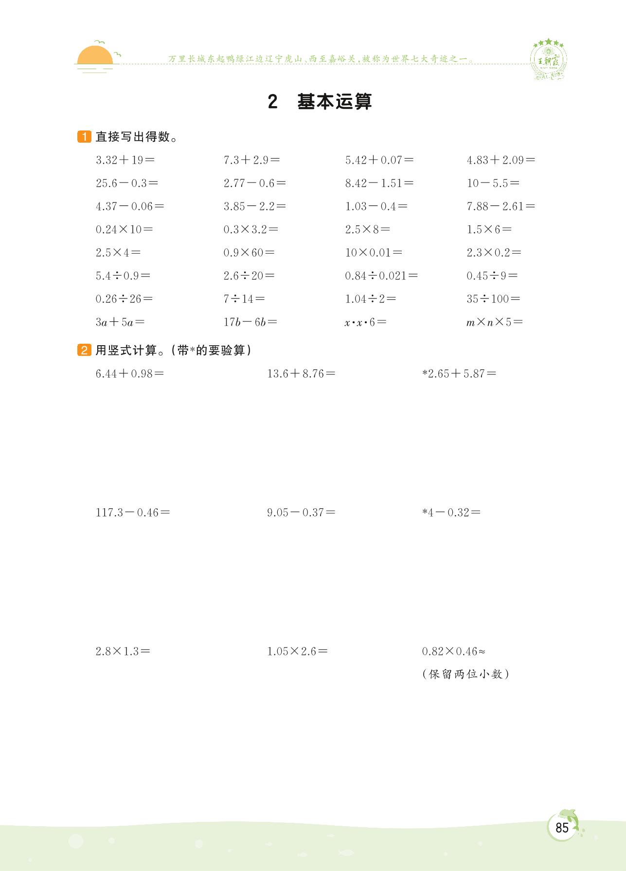 2022上册五年级数学苏教版 第九单元 整理与复习——2 基本运算