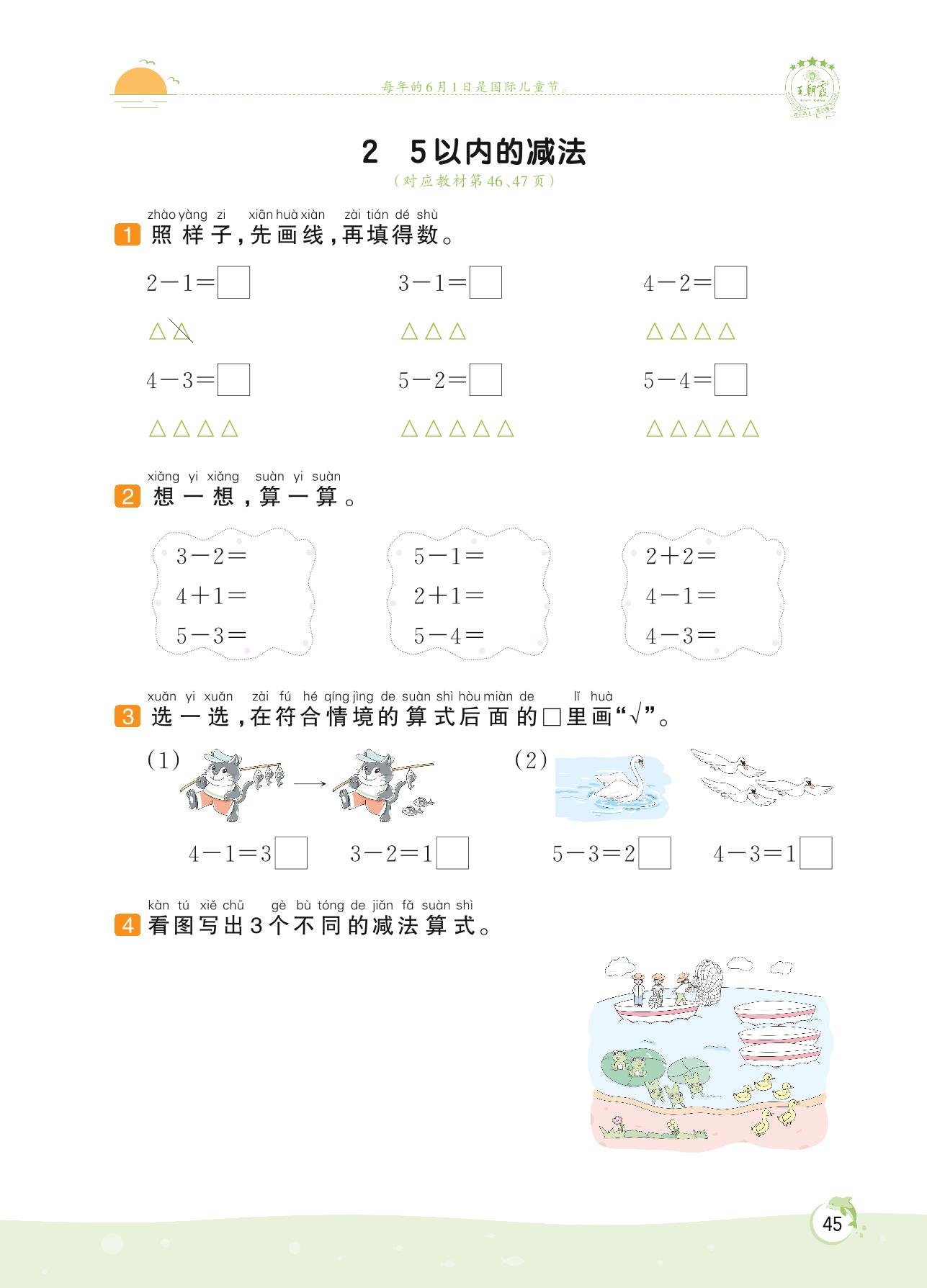 2022上册一年级数学苏教版 第八单元 10以内的加法和减法——2 5以内的减法