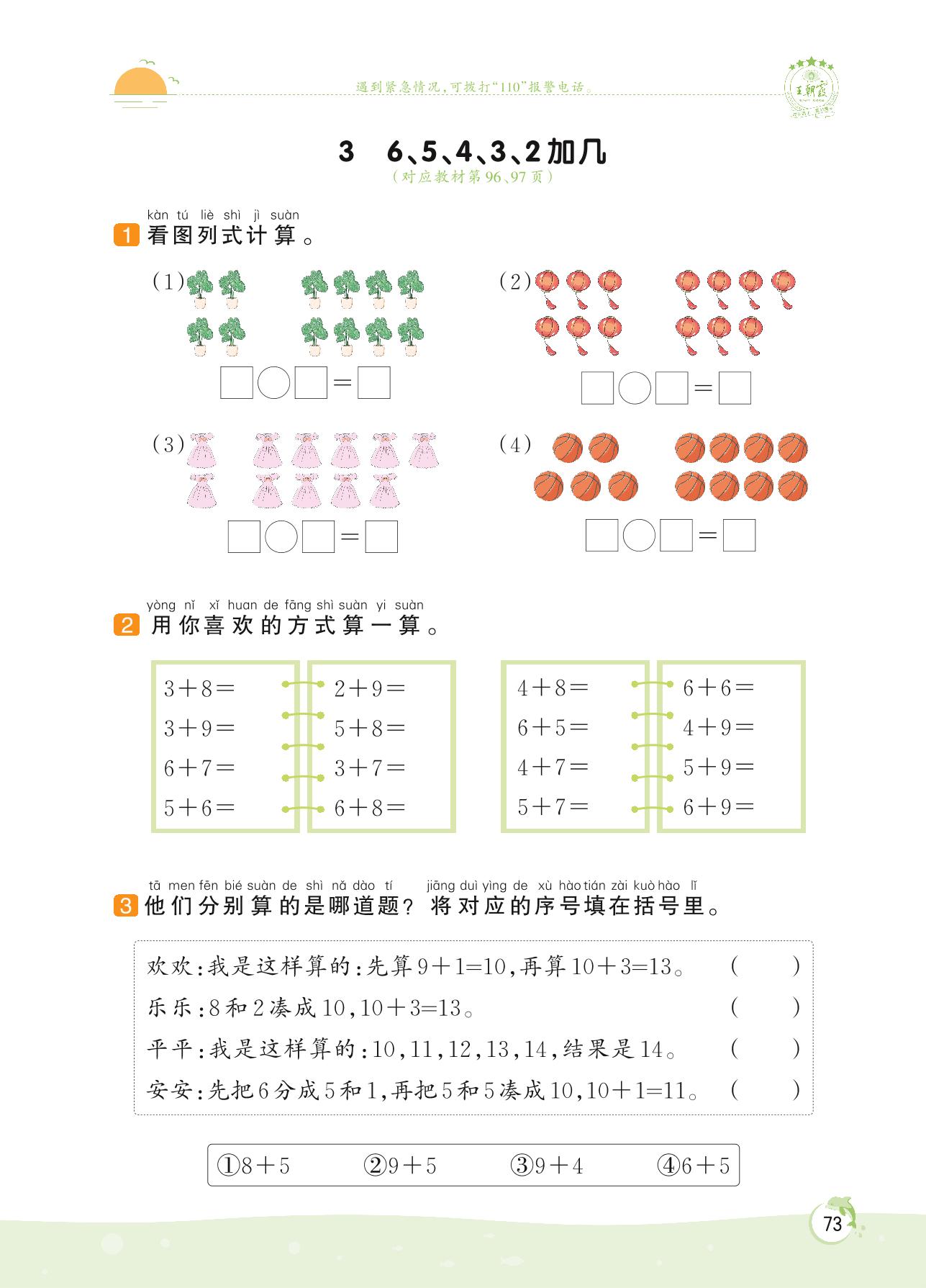 2022上册一年级数学苏教版 第十单元 20以内的进位加法——3 6、5、4、3、2加几