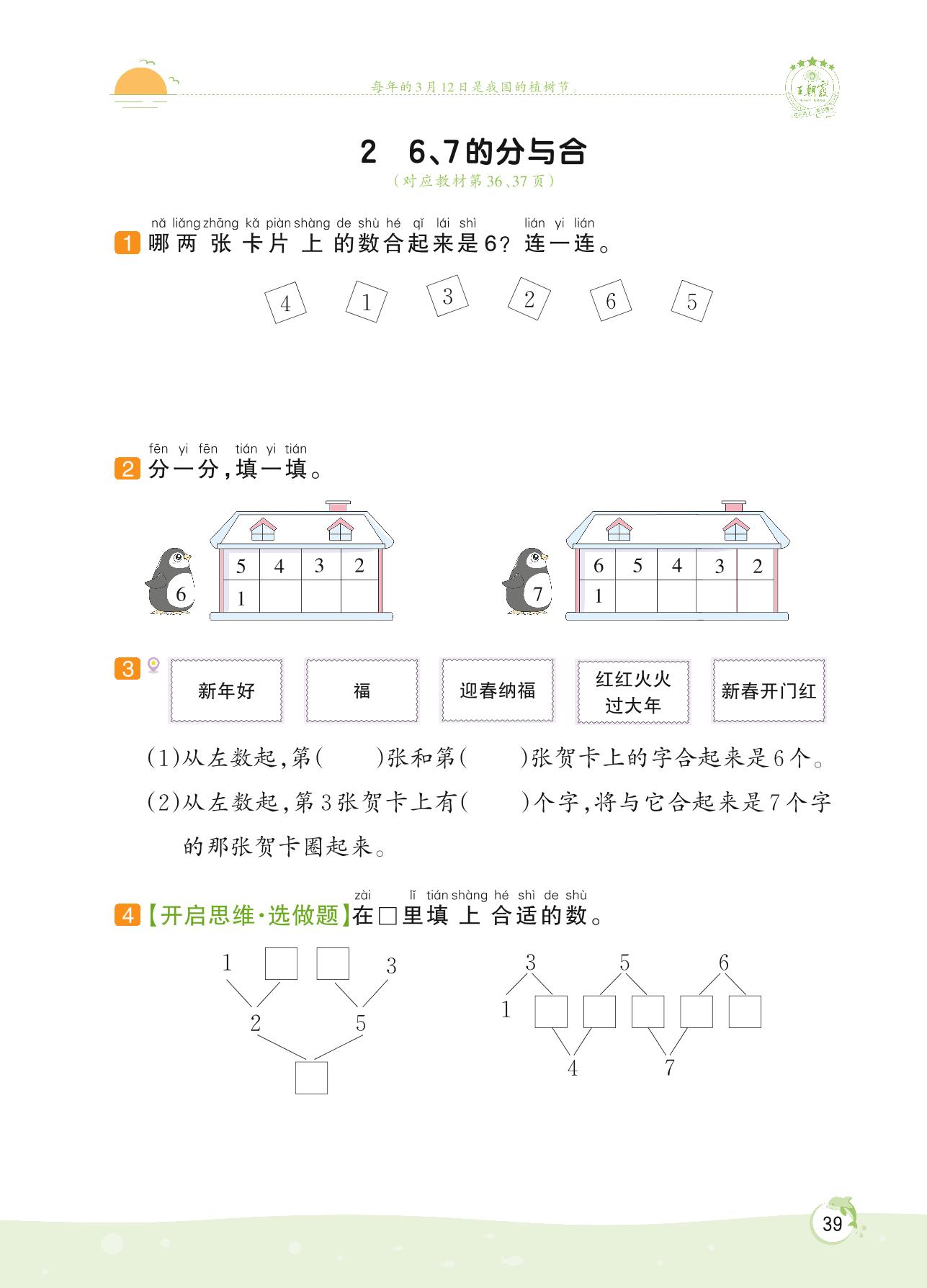 2022上册一年级数学苏教版 第七单元 分与合——2 6、7的分与合