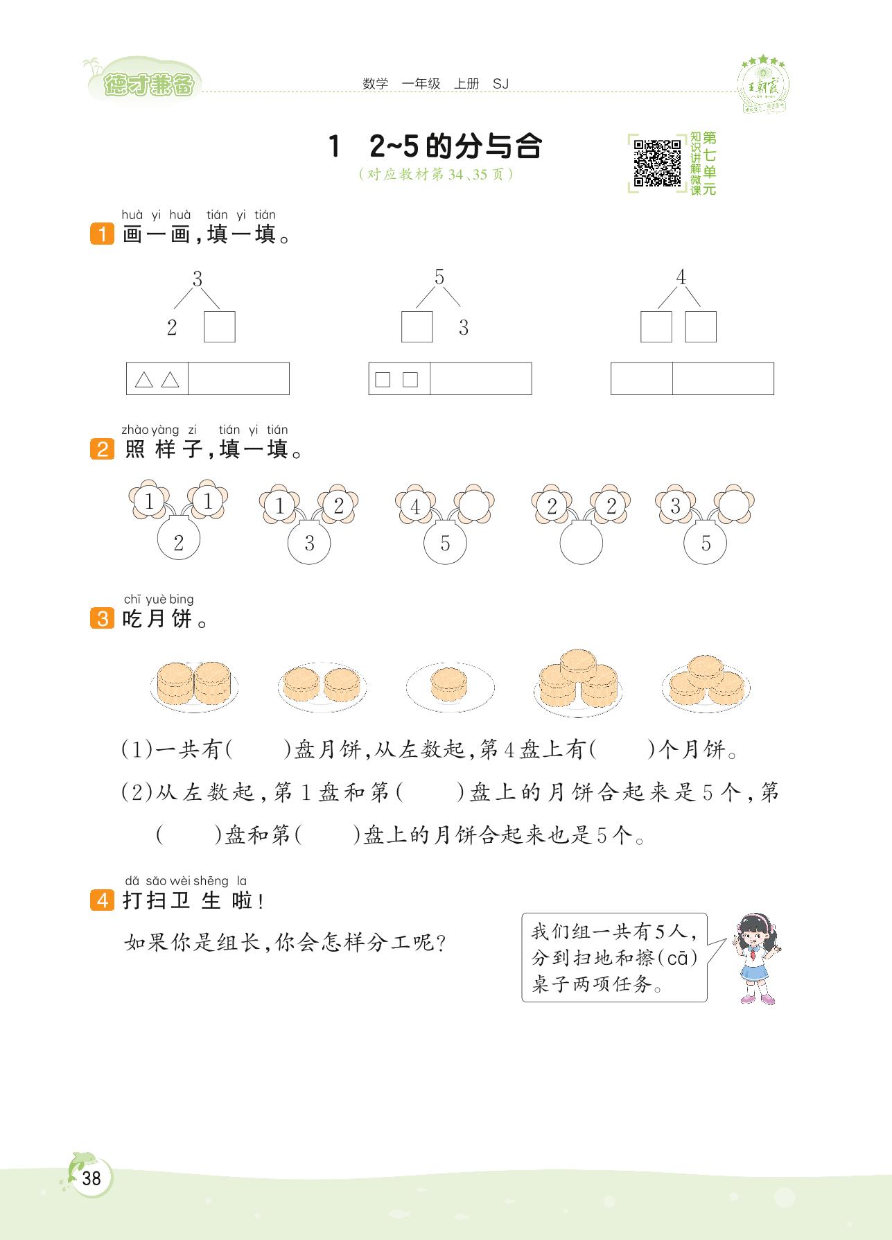 2022上册一年级数学苏教版 第七单元 分与合——1 2~5的分与合