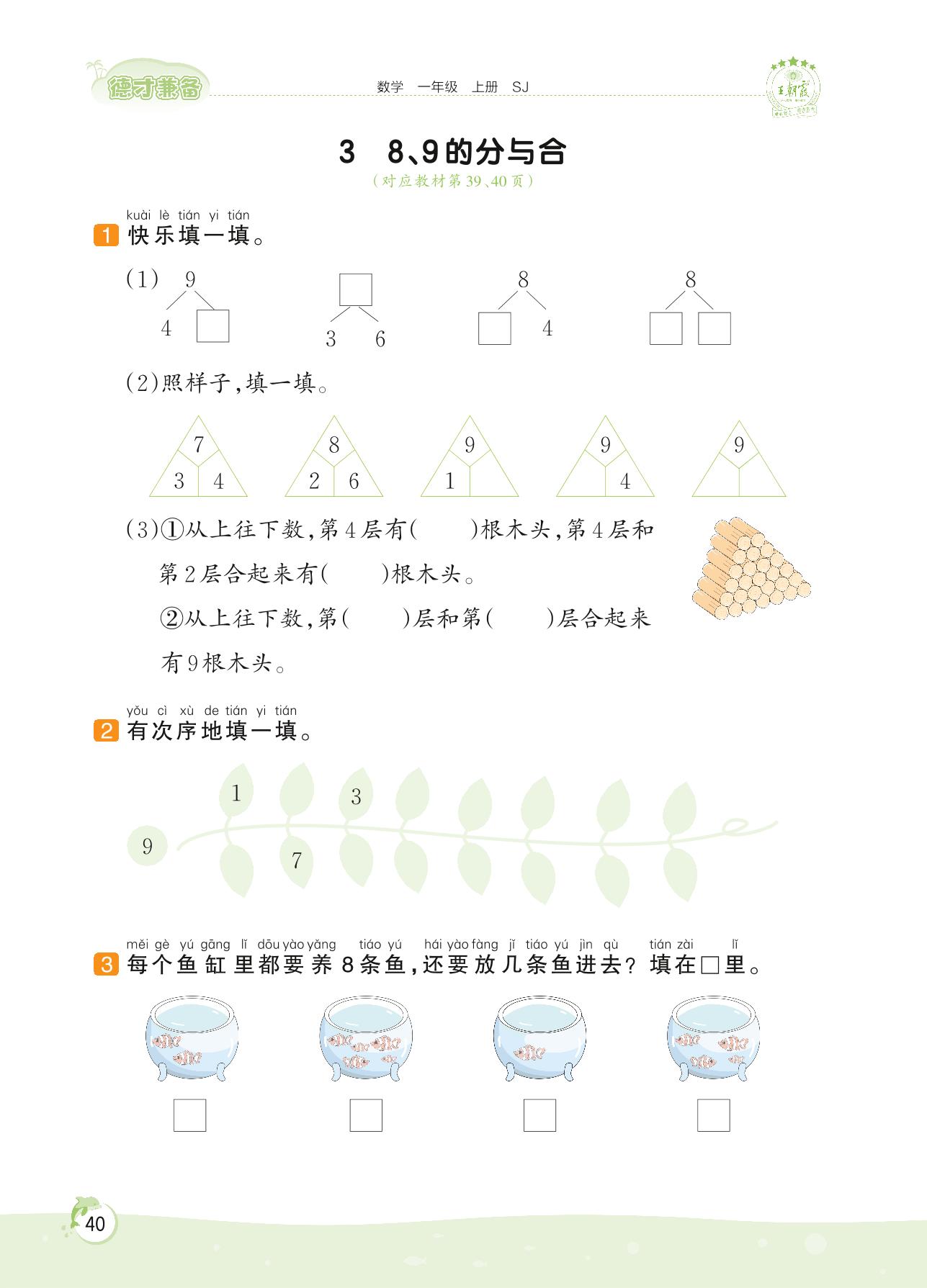 2022上册一年级数学苏教版 第七单元 分与合——3 8、9的分与合