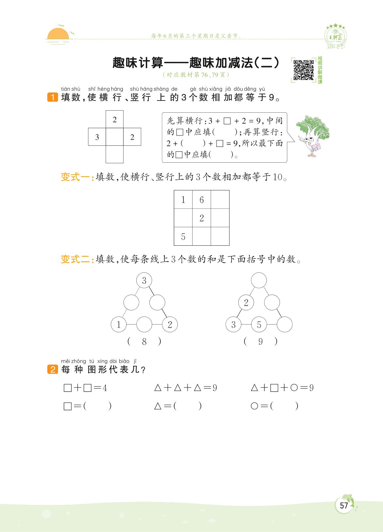 2022上册一年级数学苏教版 第八单元 10以内的加法和减法——趣味计算 趣味加减法(二)