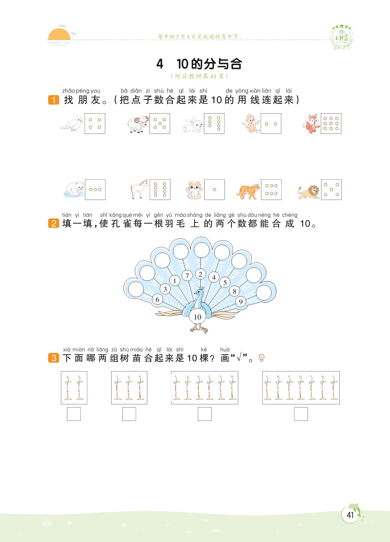 2022上册一年级数学苏教版 第七单元 分与合——4 10的分与合