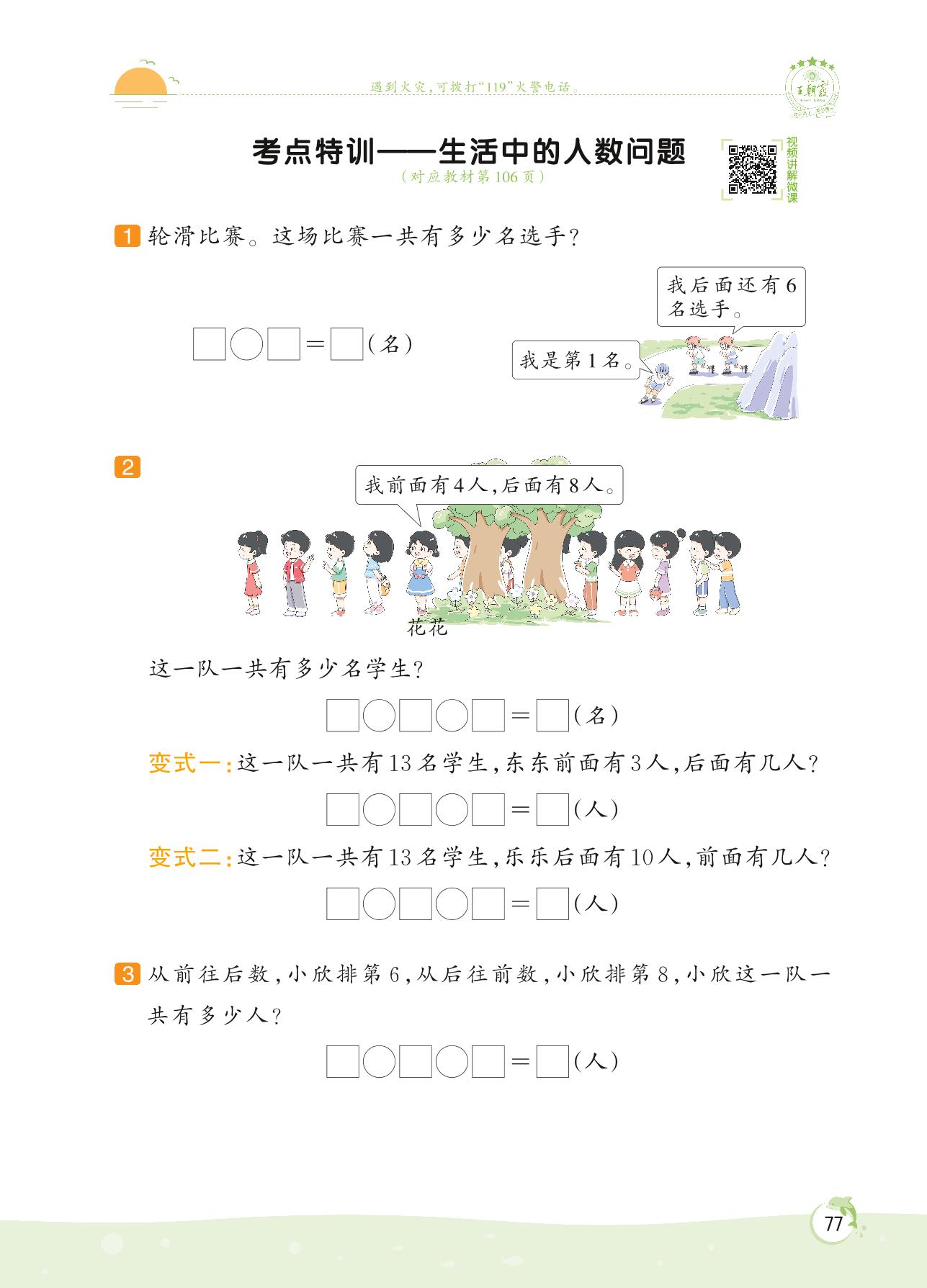 2022上册一年级数学苏教版 第十单元 20以内的进位加法——考点特训 生活中的人数问题