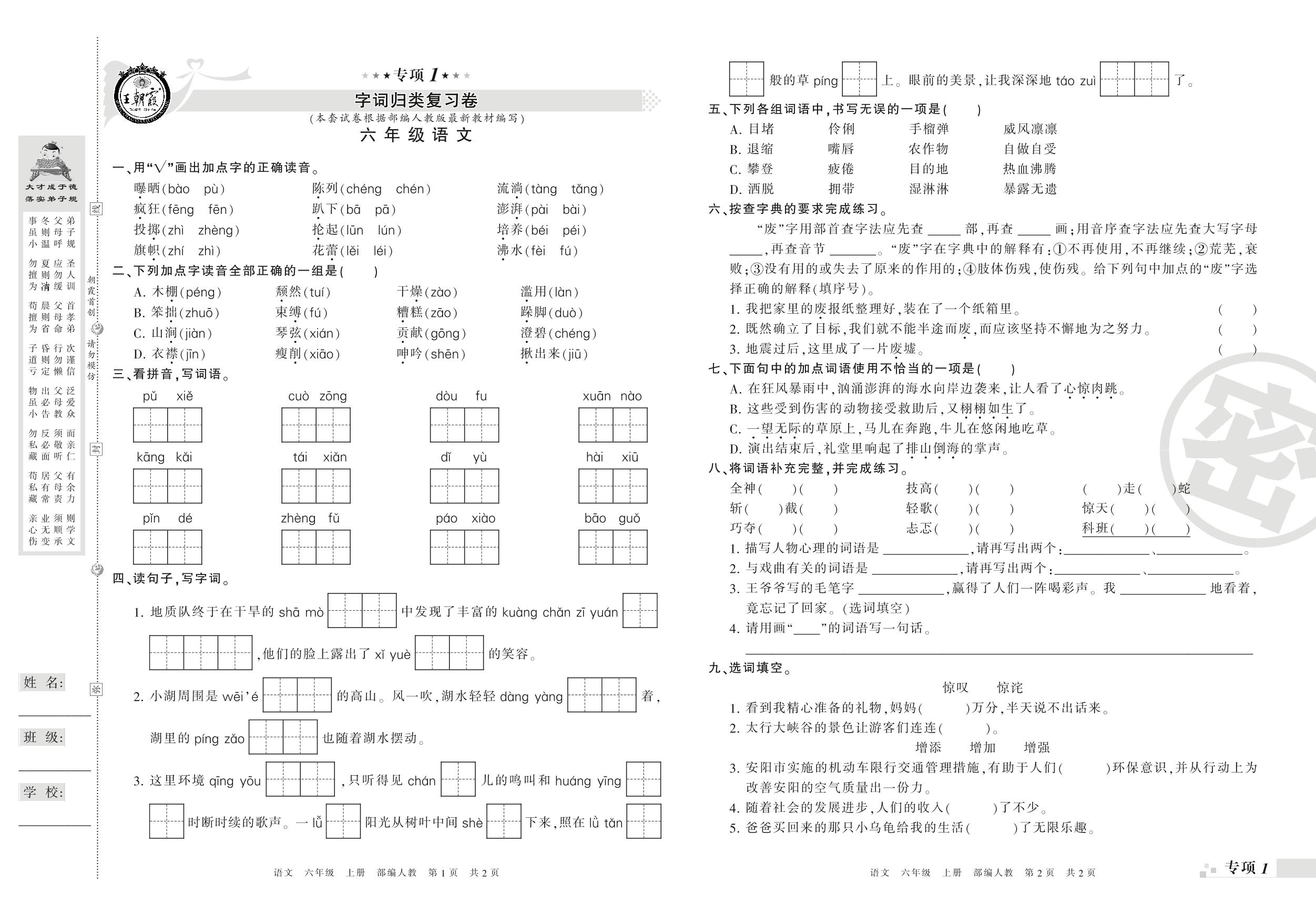 王朝霞期末专项卷——字词、句子与口语交际归类复习六年级上册语文(人教版)_R21080241802【0】