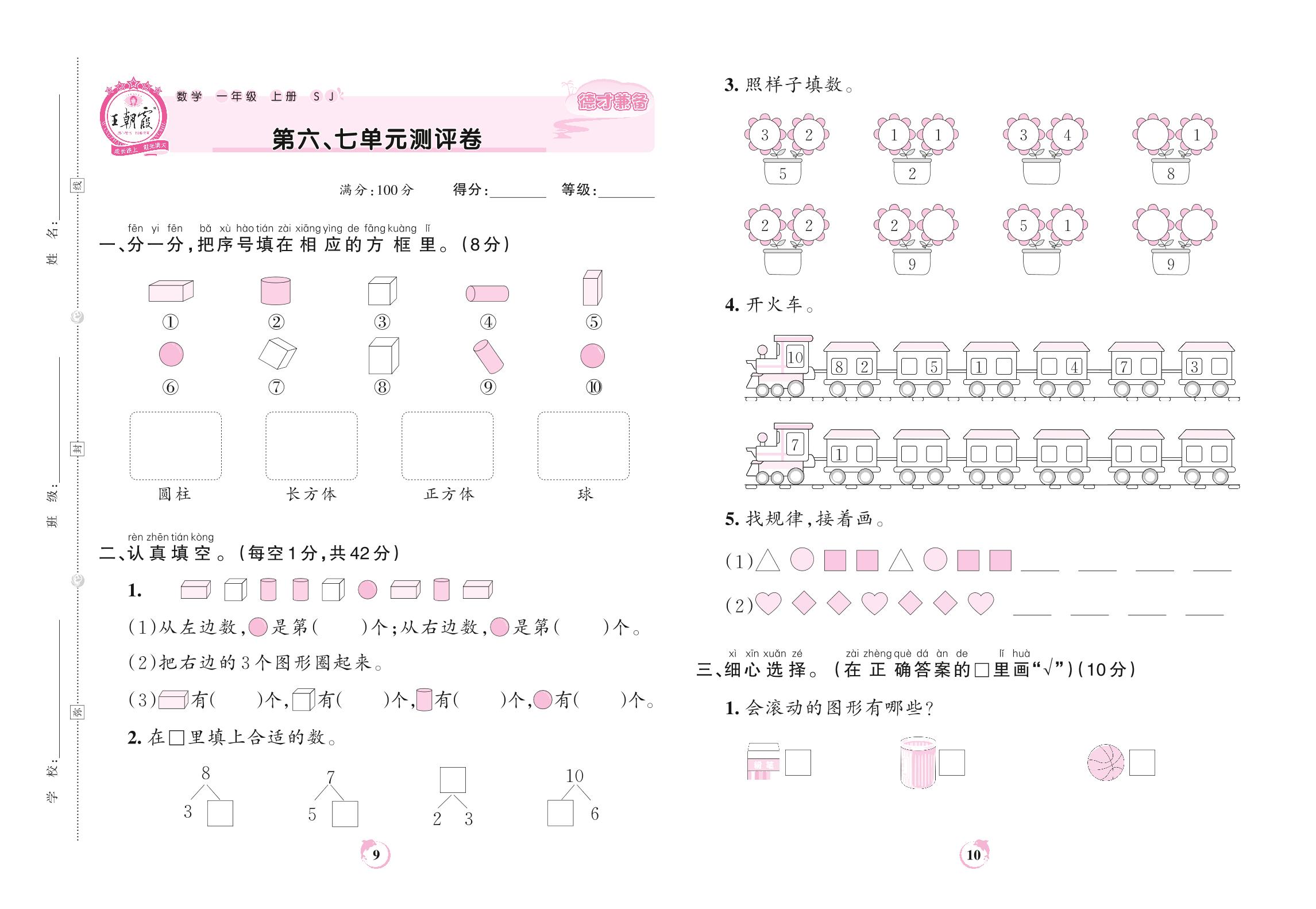 2022上册一年级数学苏教版 第六、七单元测评卷