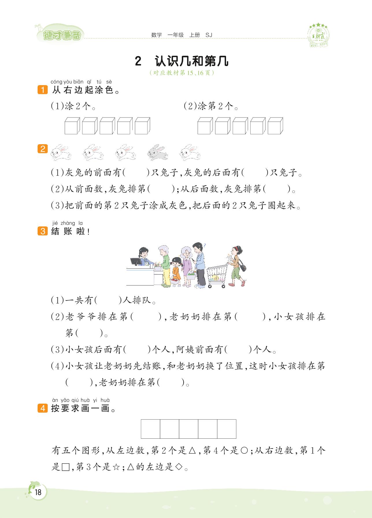 2022上册一年级数学苏教版 第五单元 认识10以内的数——2 认识几和第几