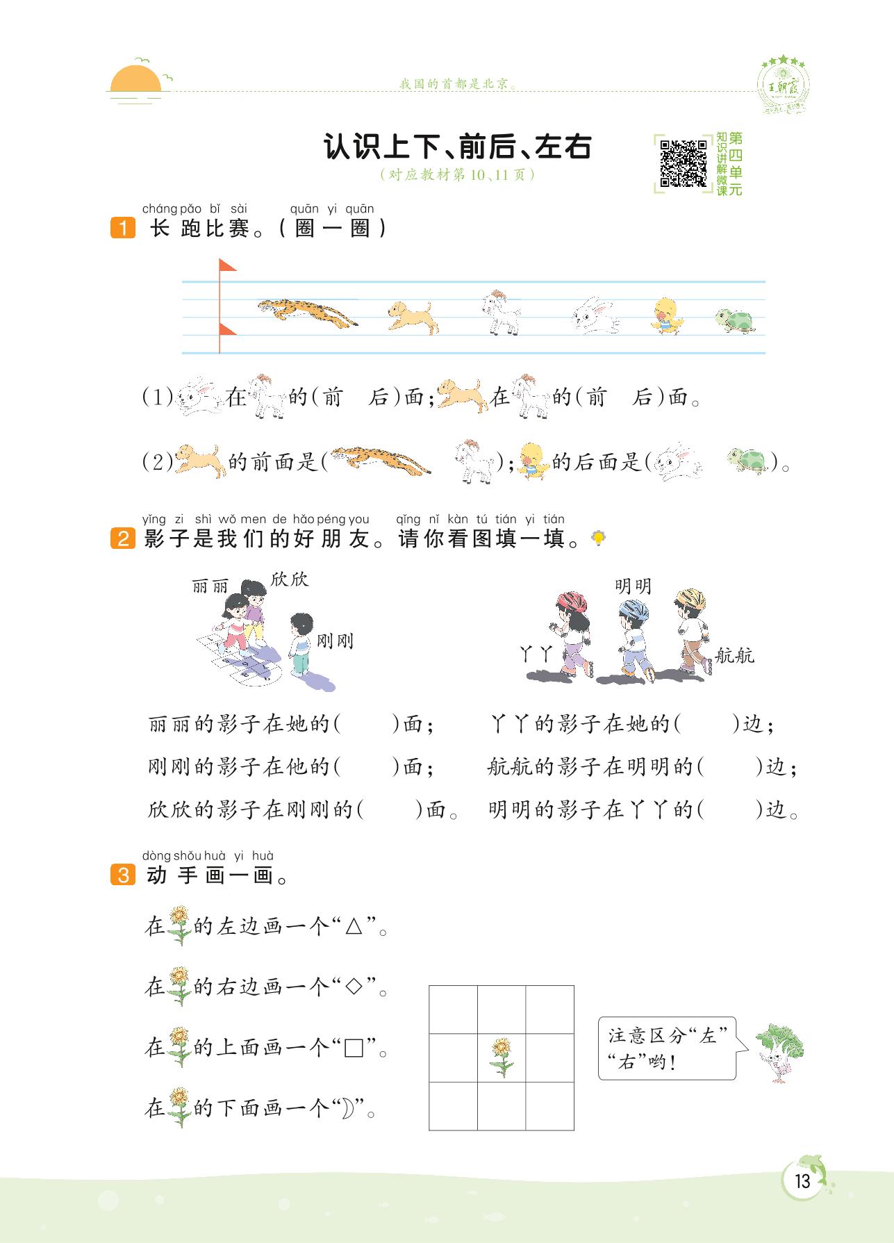2022上册一年级数学苏教版 第四单元 认位置——认识上下、前后、左右