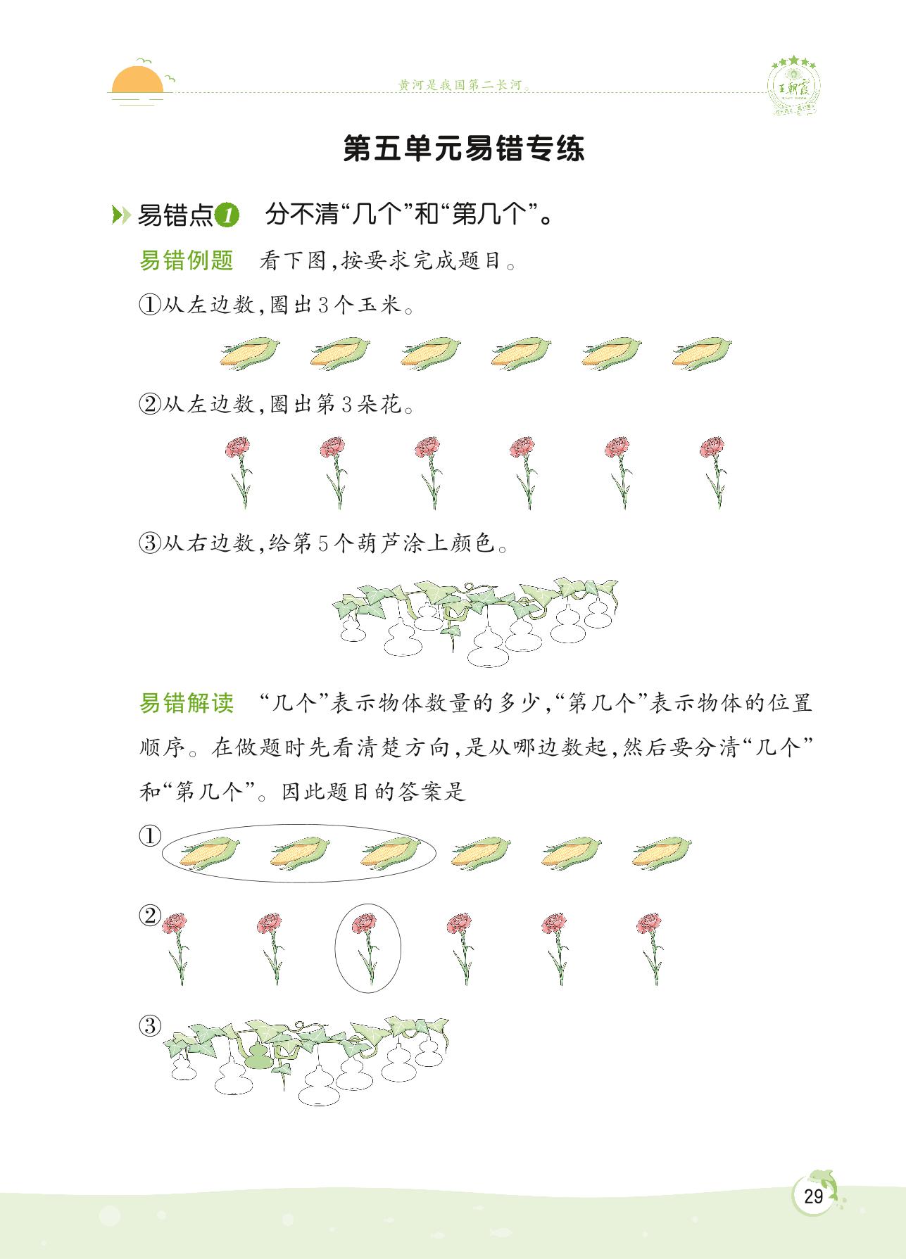 2022上册一年级数学苏教版 第五单元易错专练
