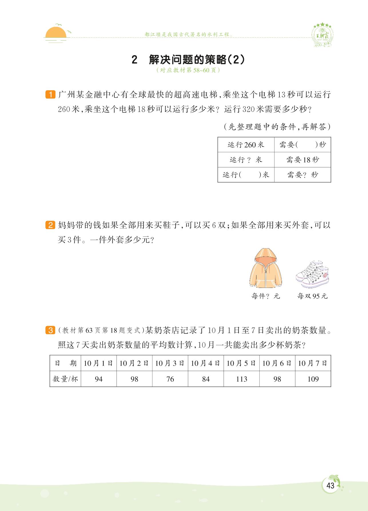 2022上册四年级数学苏教版 第五单元 解决问题的策略——2 解决问题的策略(2)