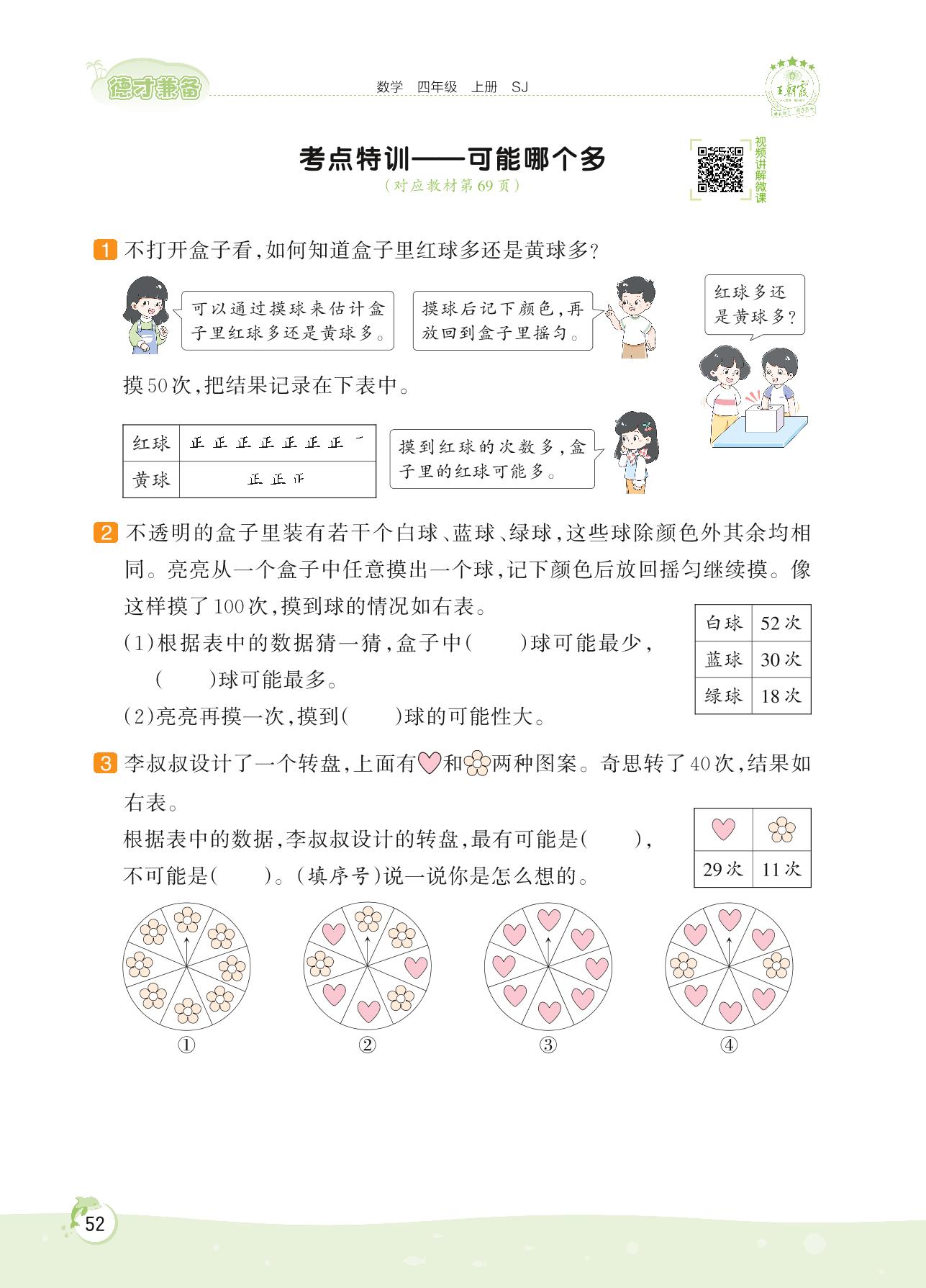 2022上册四年级数学苏教版 第六单元 可能性——考点特训 可能哪个多