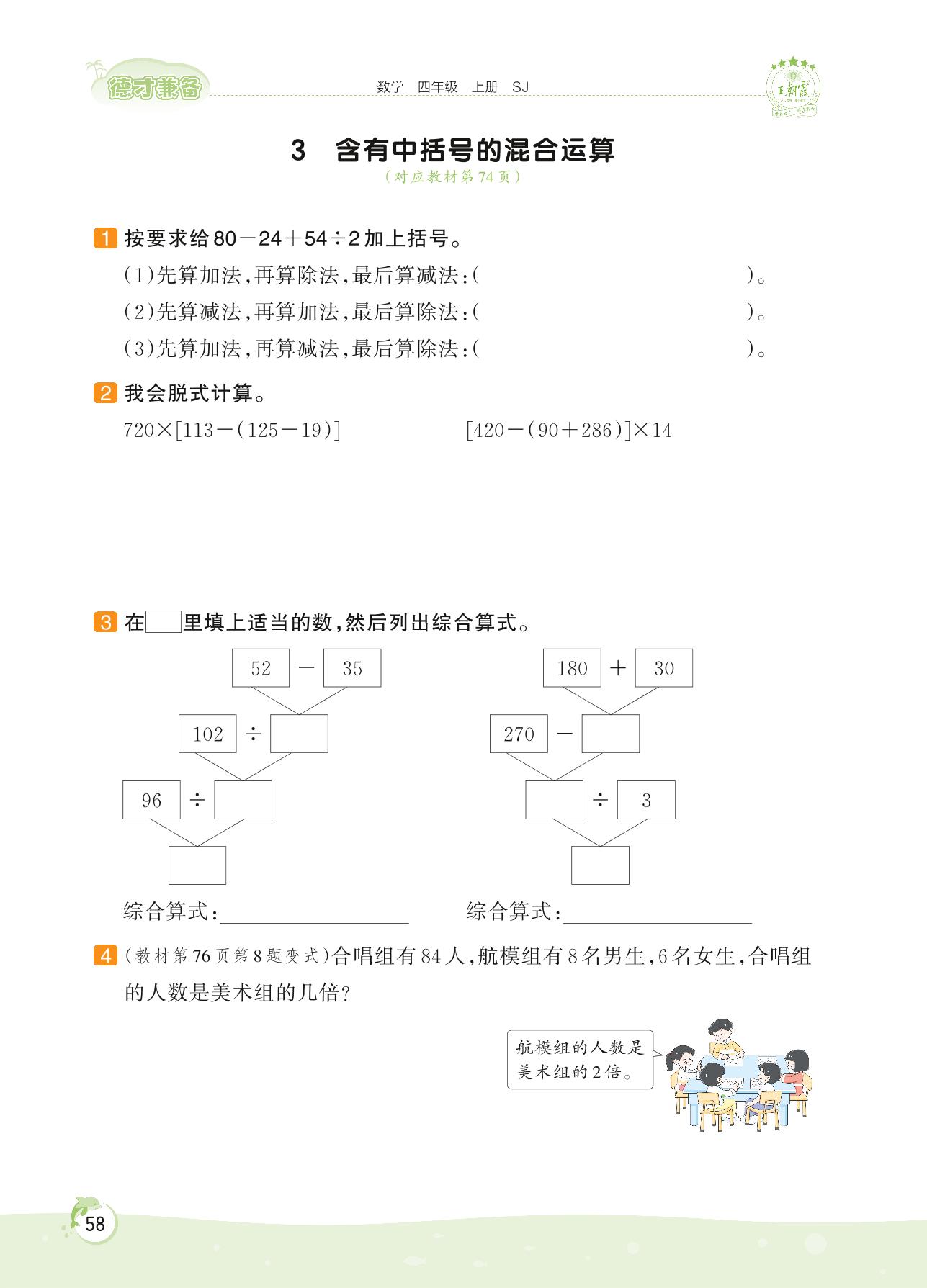 2022上册四年级数学苏教版 第七单元 整数四则混合运算——3 含有中括号的混合运算