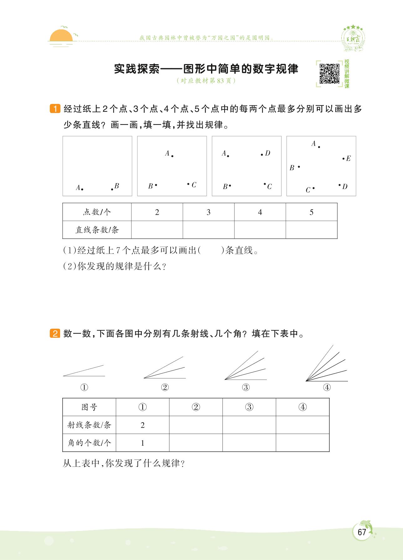 2022上册四年级数学苏教版 第八单元 垂线与平行线——实践探索 图形中简单的数字规律