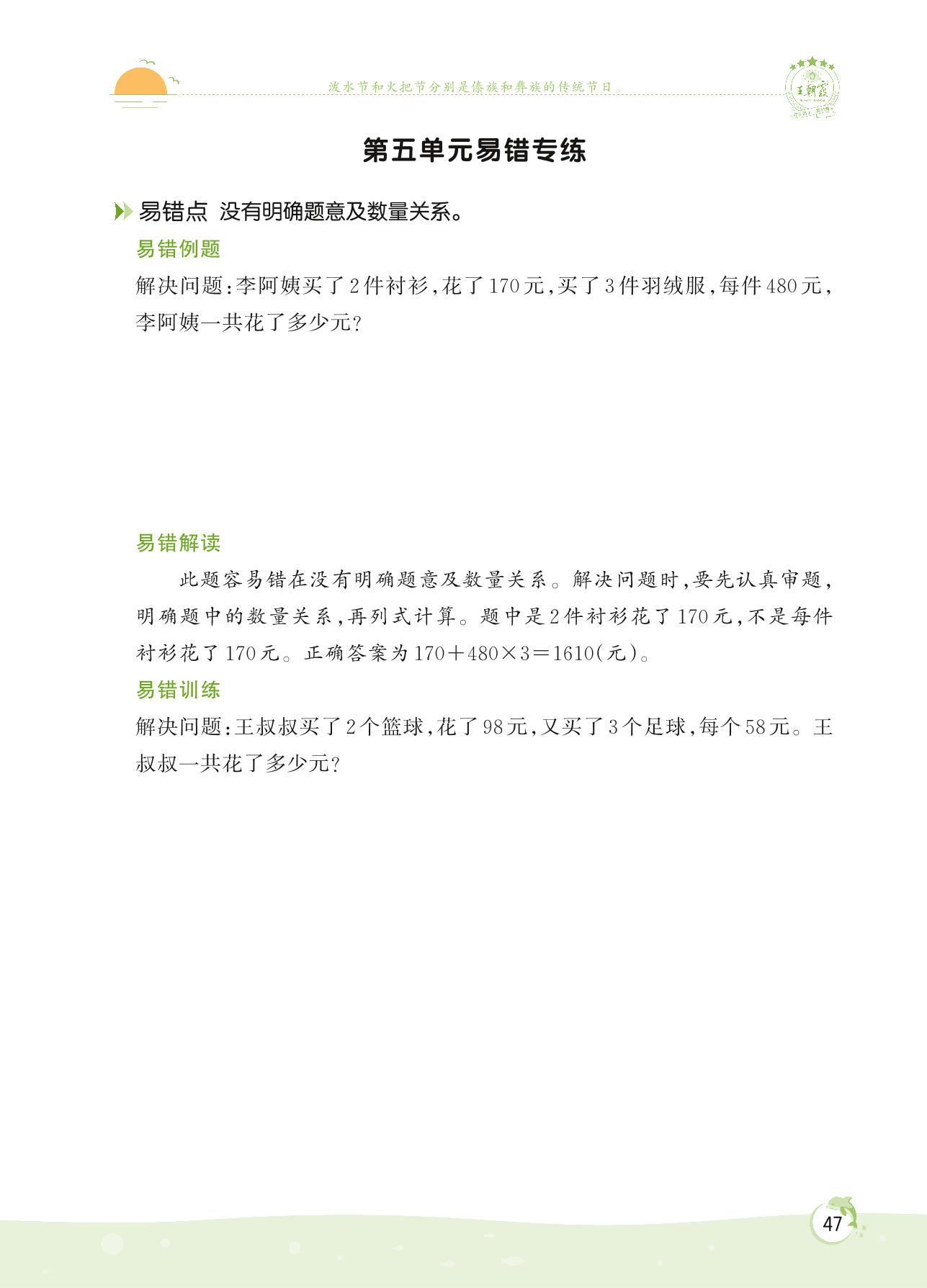 2022上册四年级数学苏教版 第五单元易错专练