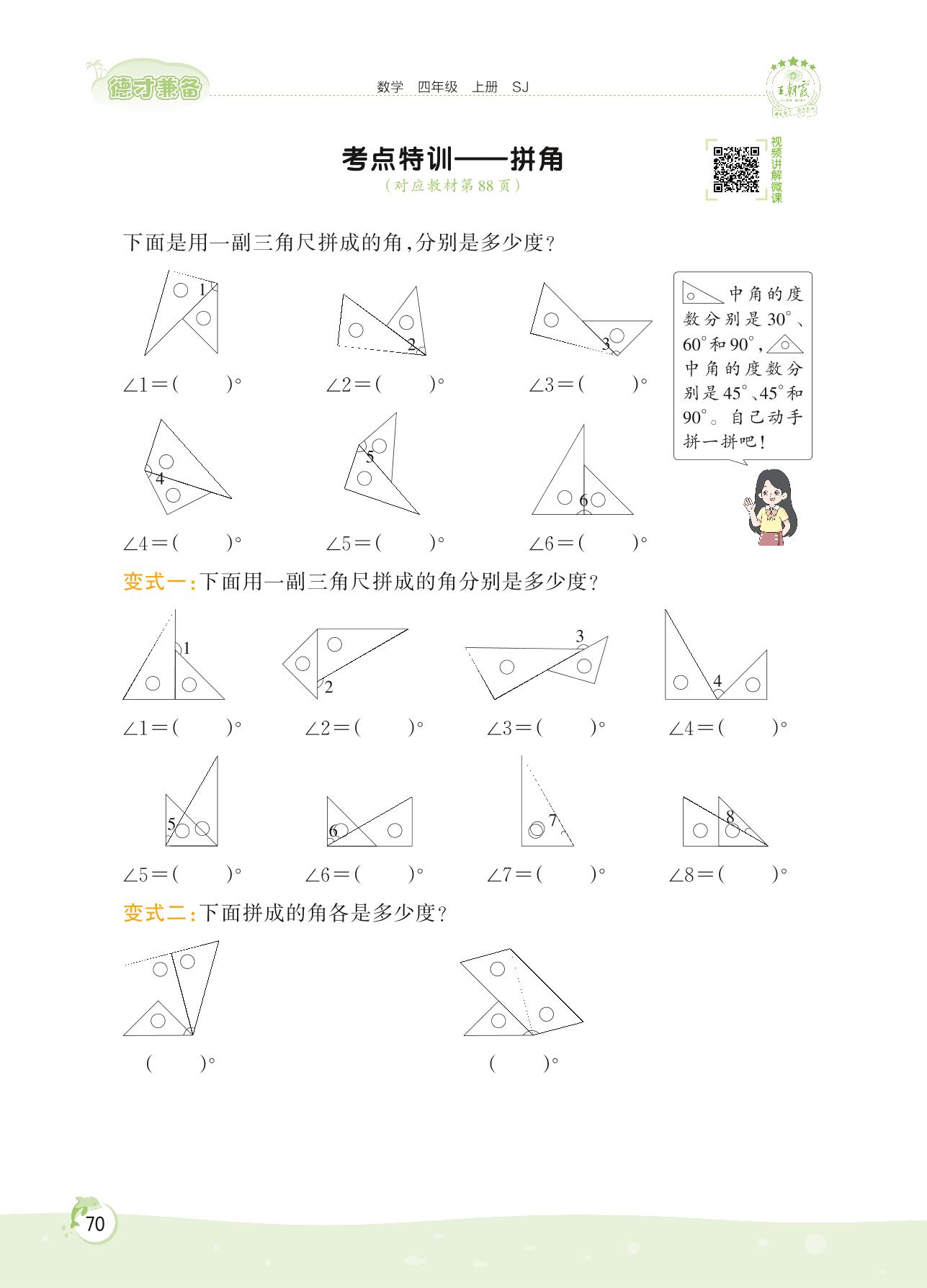2022上册四年级数学苏教版 第八单元 垂线与平行线——考点特训 拼角