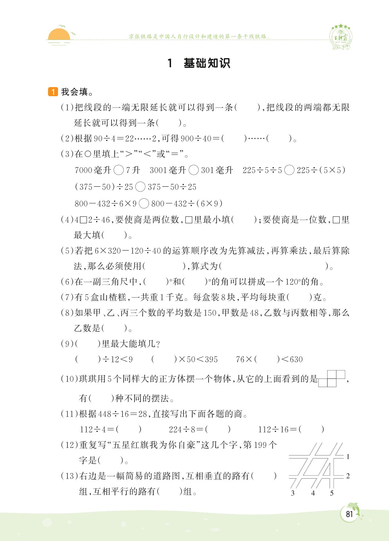 2022上册四年级数学苏教版 第九单元 整理与复习——1 基础知识