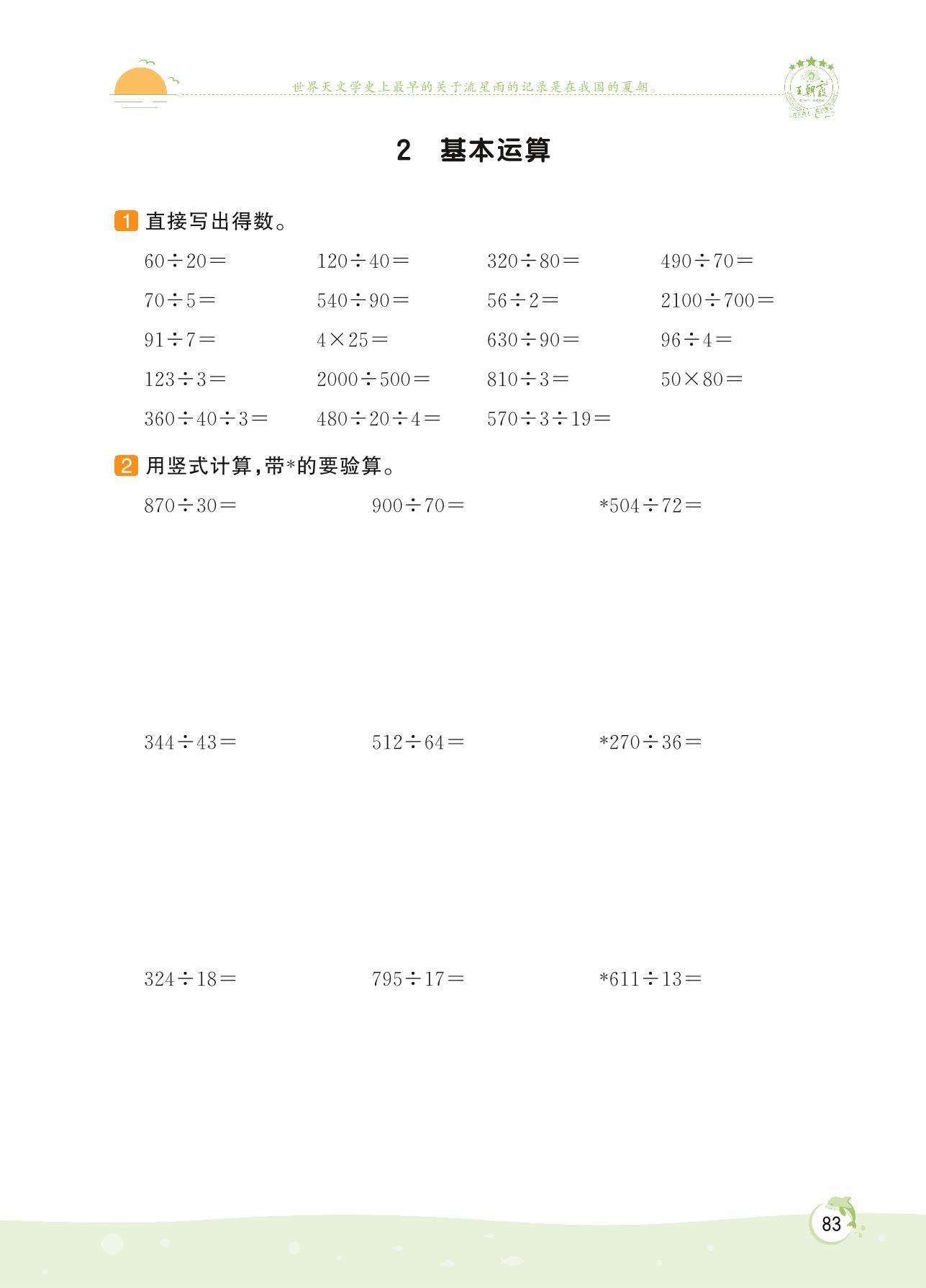 2022上册四年级数学苏教版 第九单元 整理与复习——2 基本运算
