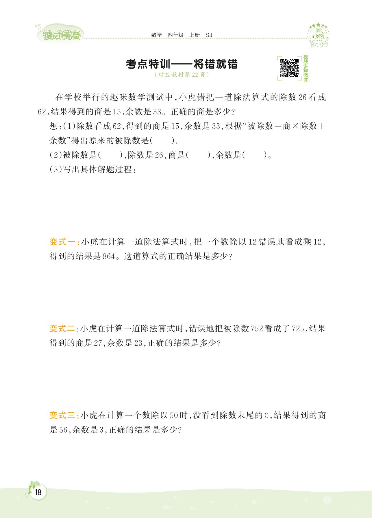 2022上册四年级数学苏教版 第二单元 两、三位数除以两位数——考点特训 将错就错