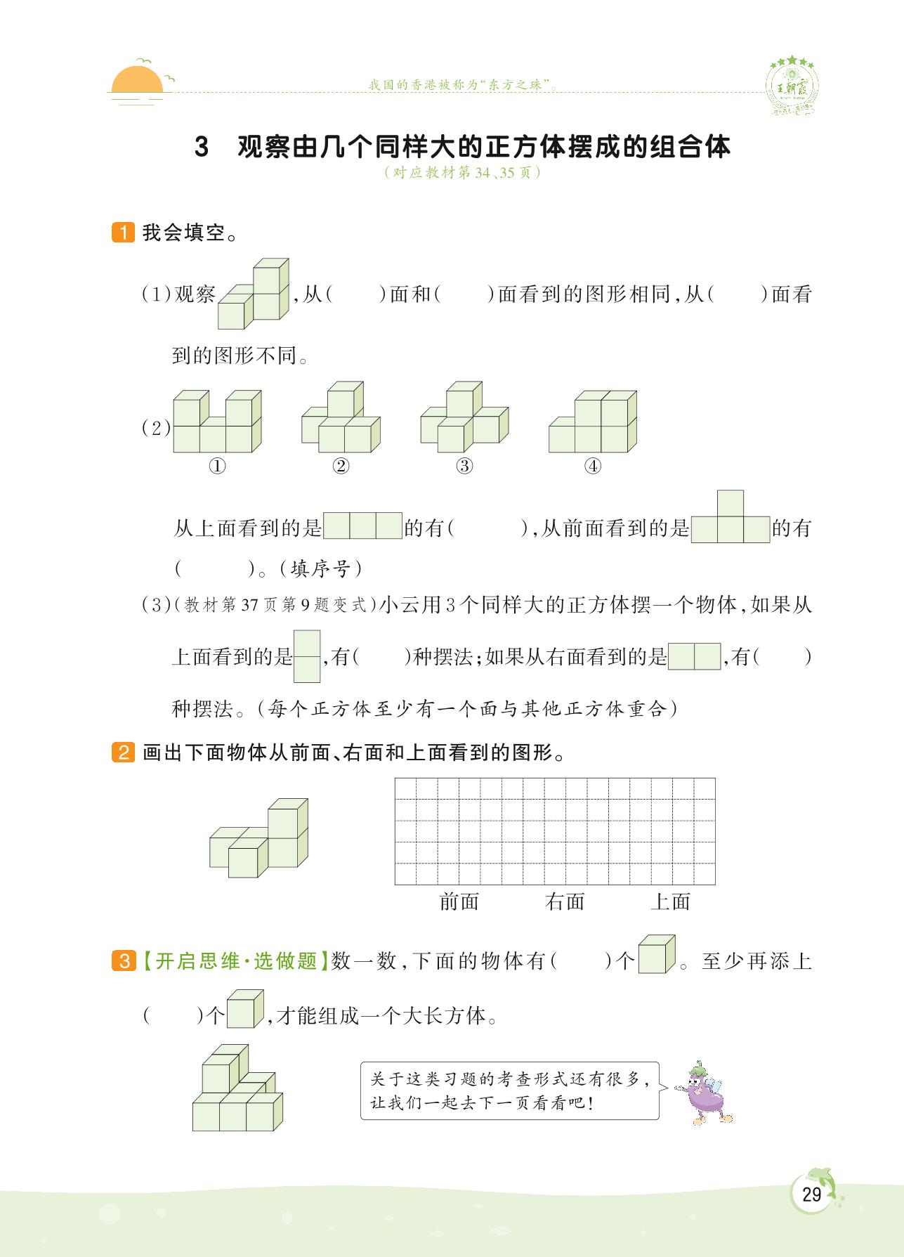 2022上册四年级数学苏教版 第三单元 观察物体——3 观察由几个同样大的正方体摆成的组合体