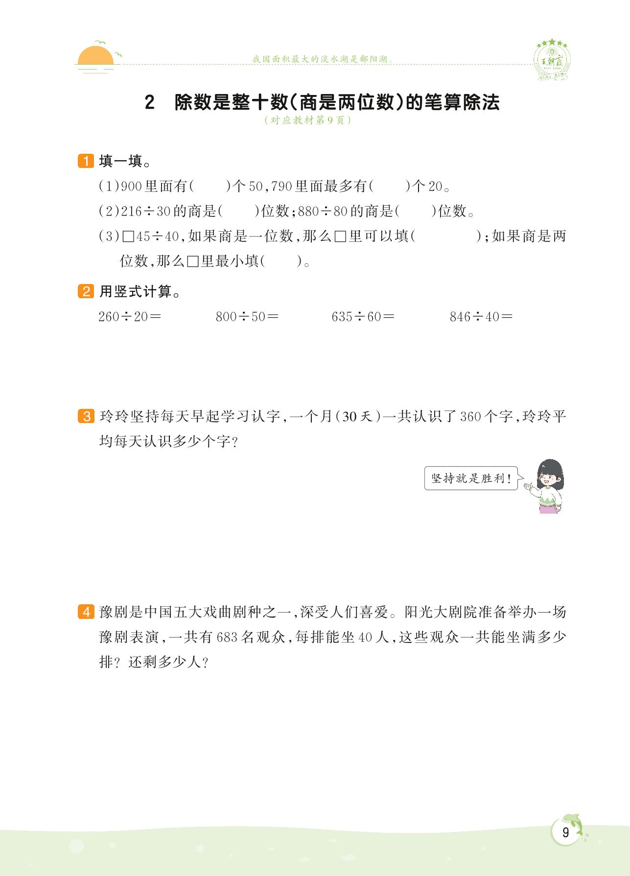 2022上册四年级数学苏教版 第二单元 两、三位数除以两位数——2 除数是整十数(商是两位数)的笔算除法