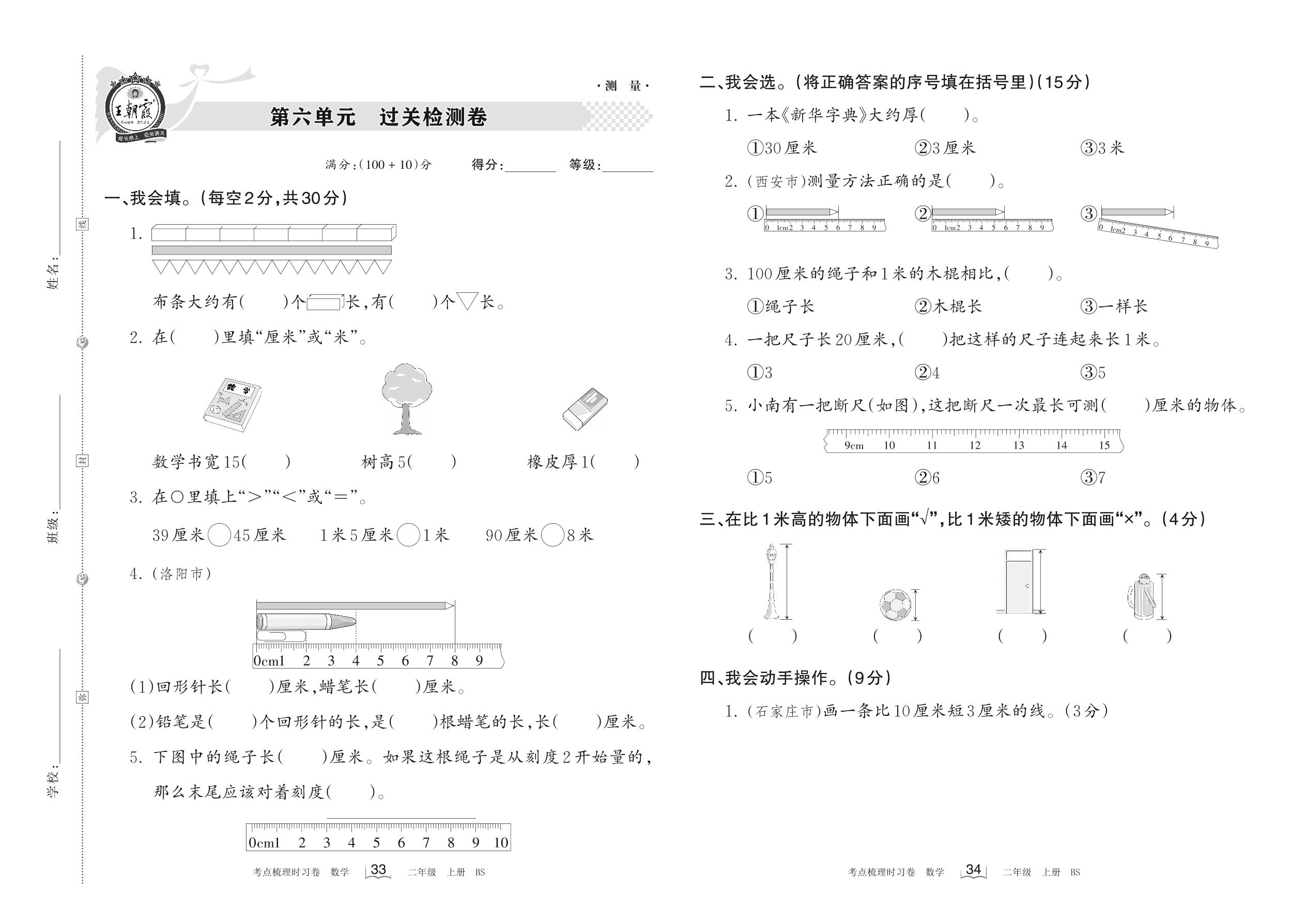 2022上册二年级数学北师版 第六单元 过关检测卷