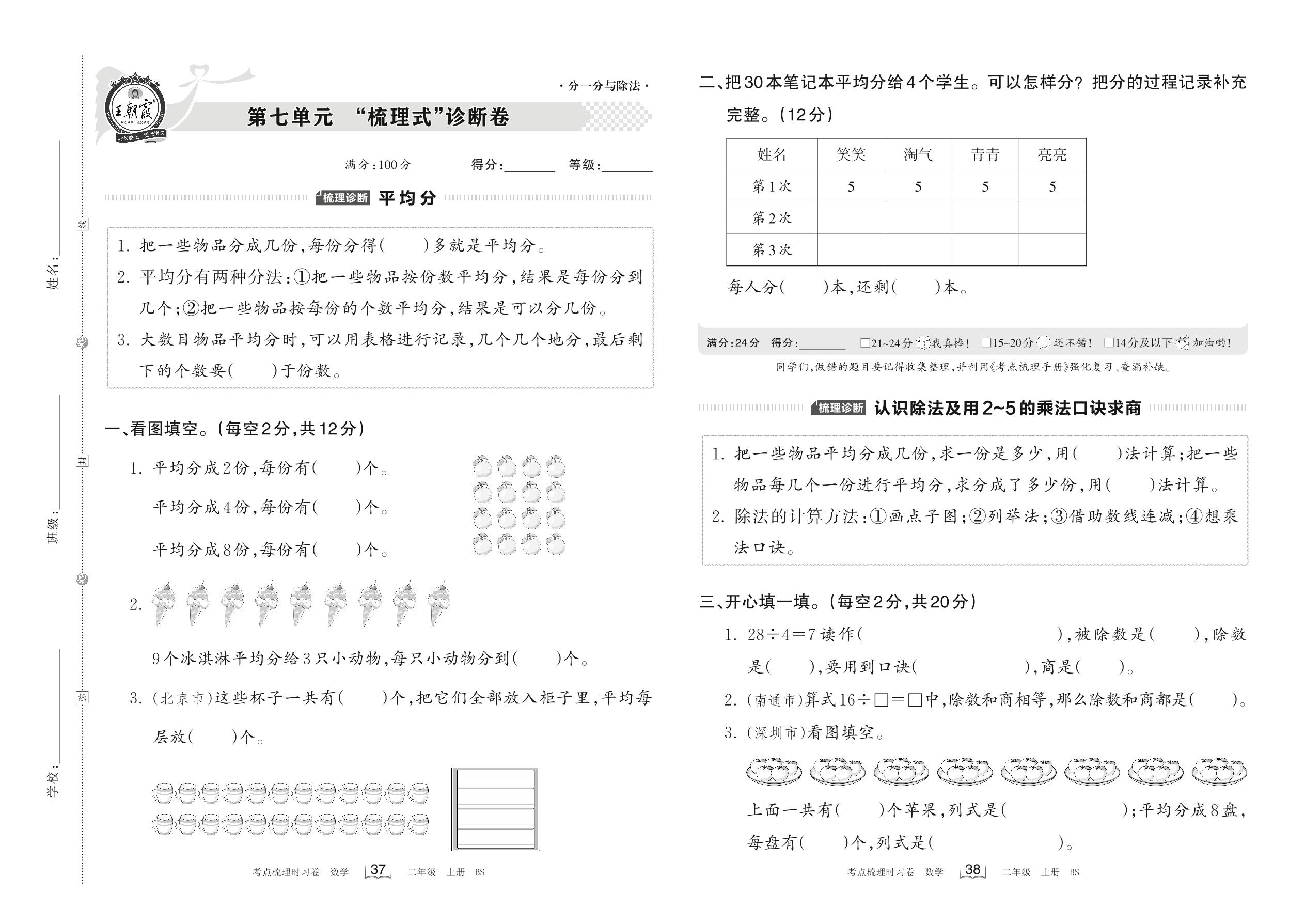 2022上册二年级数学北师版 第七单元 “梳理式”诊断卷