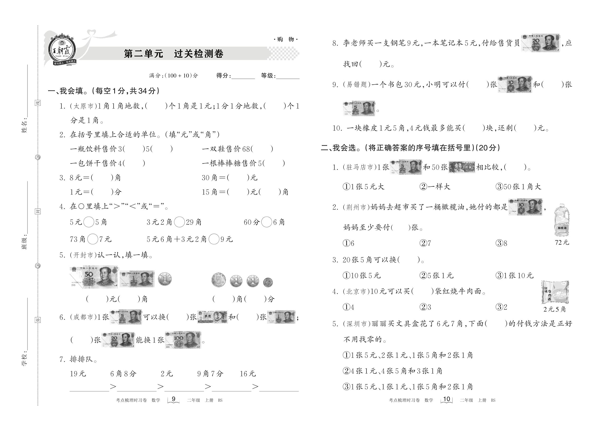 2022上册二年级数学北师版 第二单元 过关检测卷