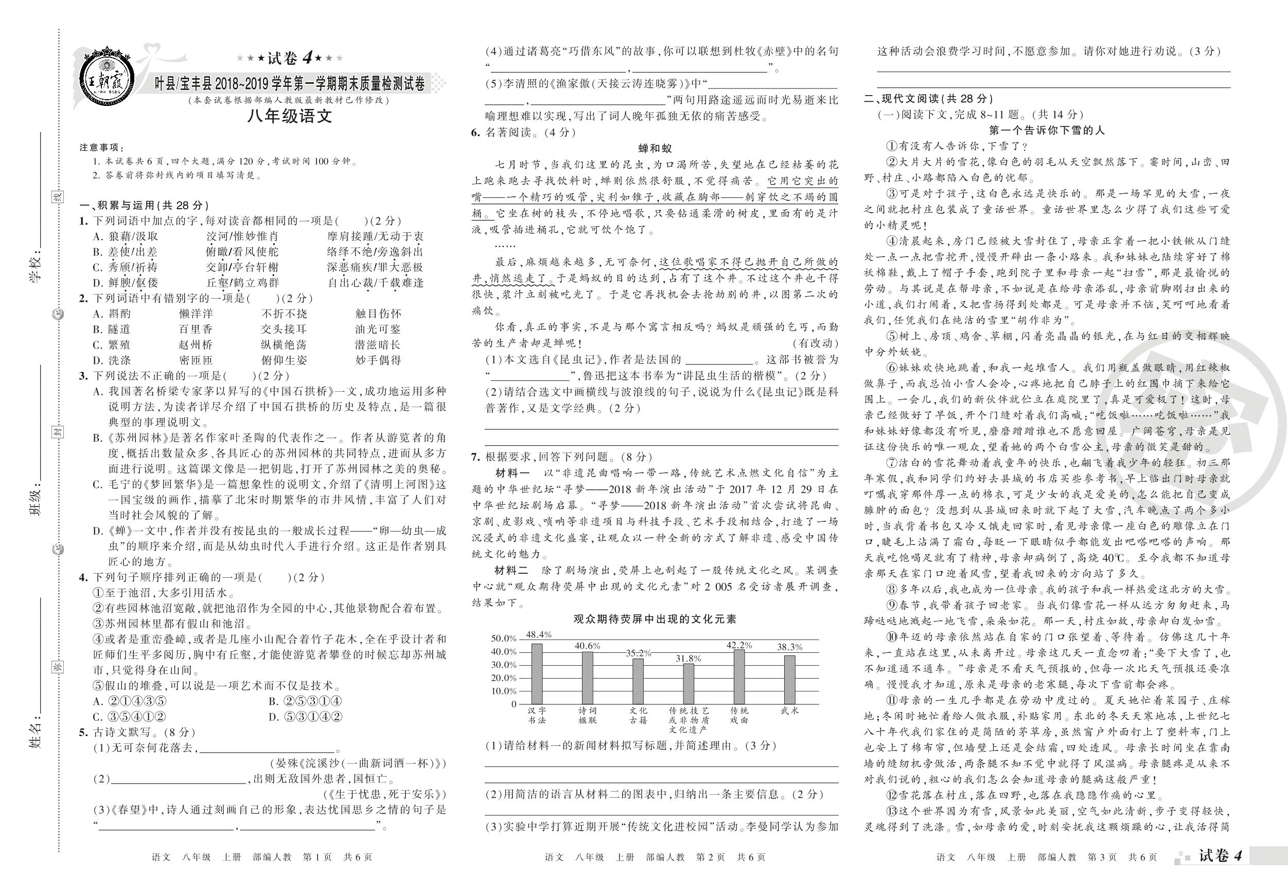 2018-2019学年第一学期平顶山市叶县宝、丰县八年级语文试卷(人教版)【4】