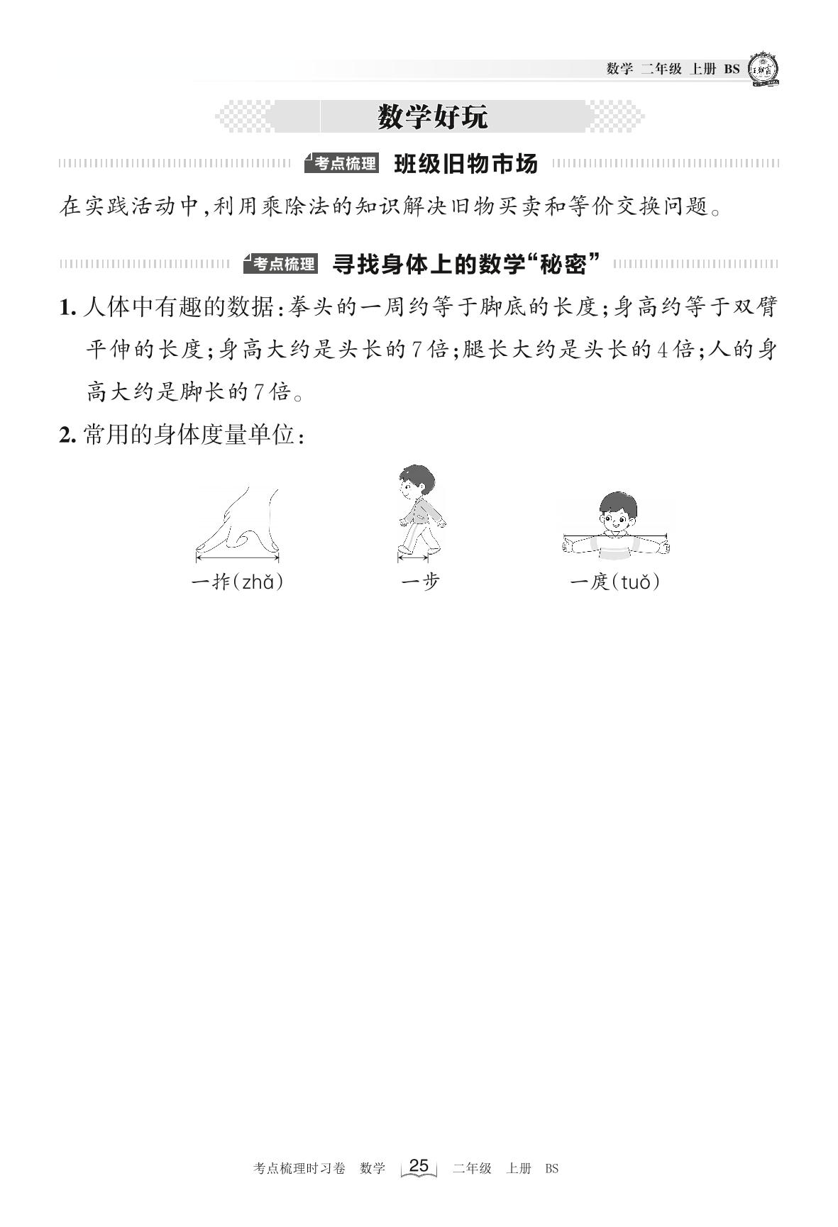 2022上册二年级数学北师版 考点梳理手册——数学好玩
