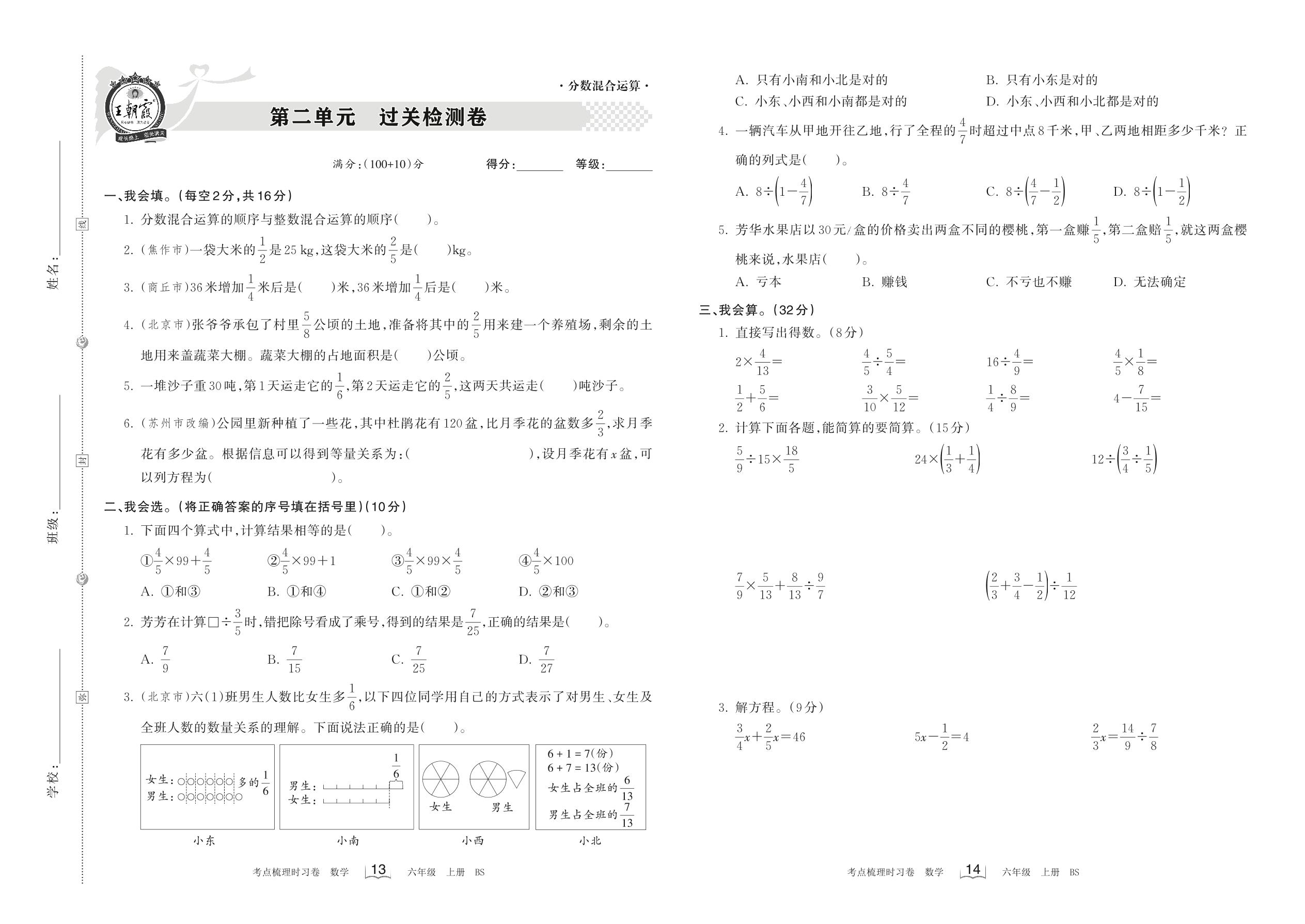 六年级数学北师版上册单元卷
