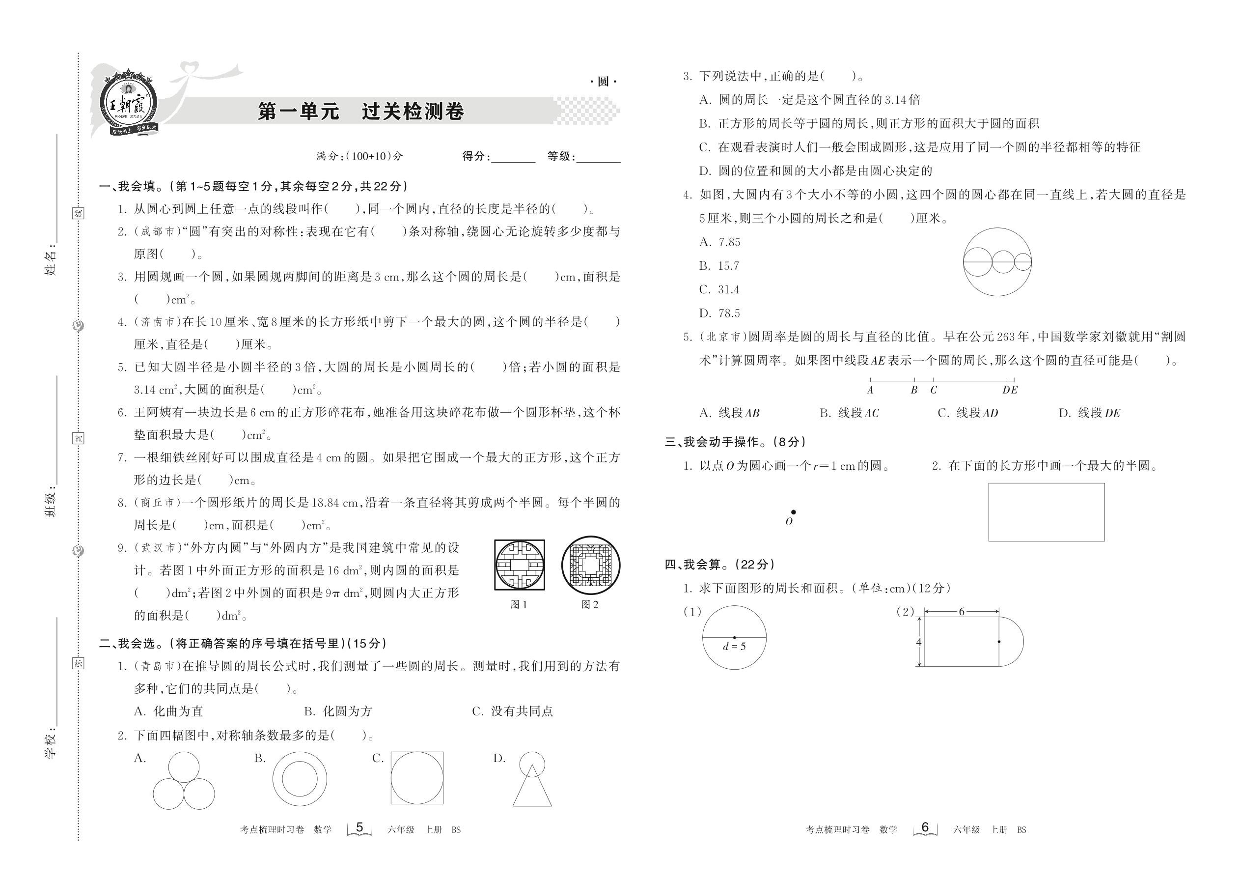 六年级数学北师版上册单元卷