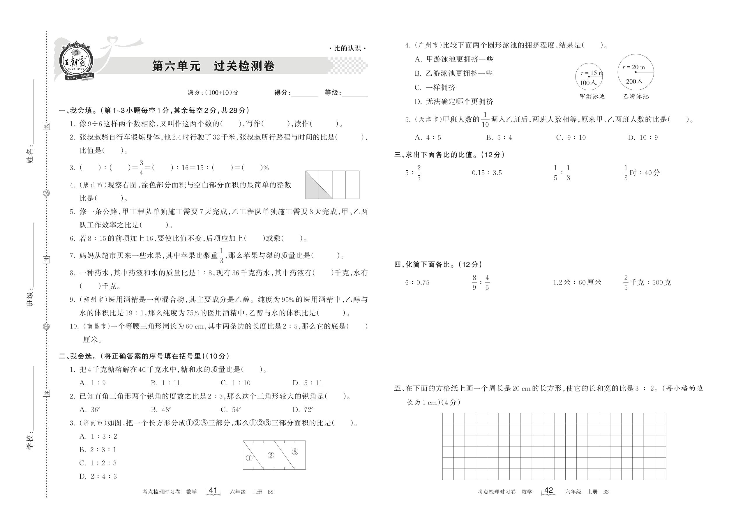 六年级数学北师版上册单元卷