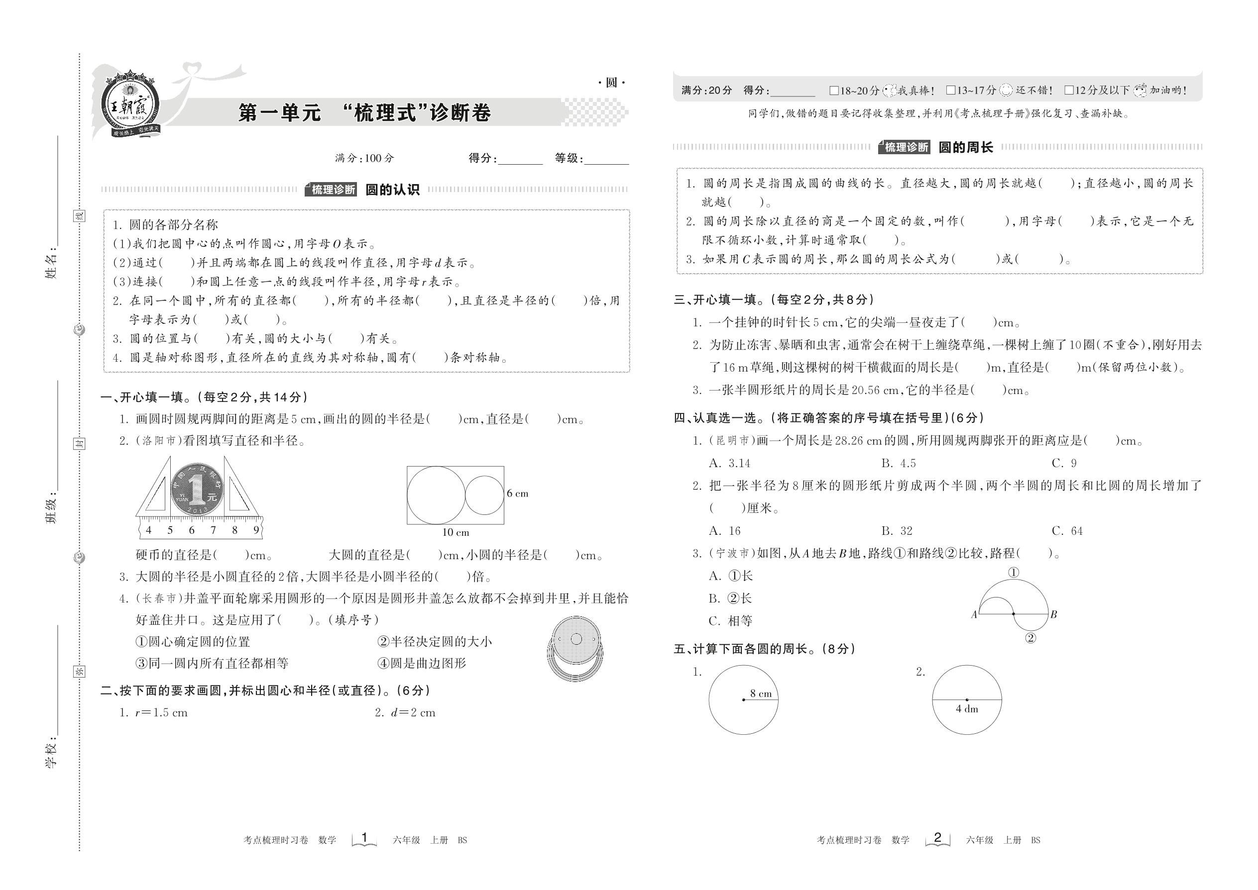 2022上册六年级数学北师版 第一单元 “梳理式”诊断卷