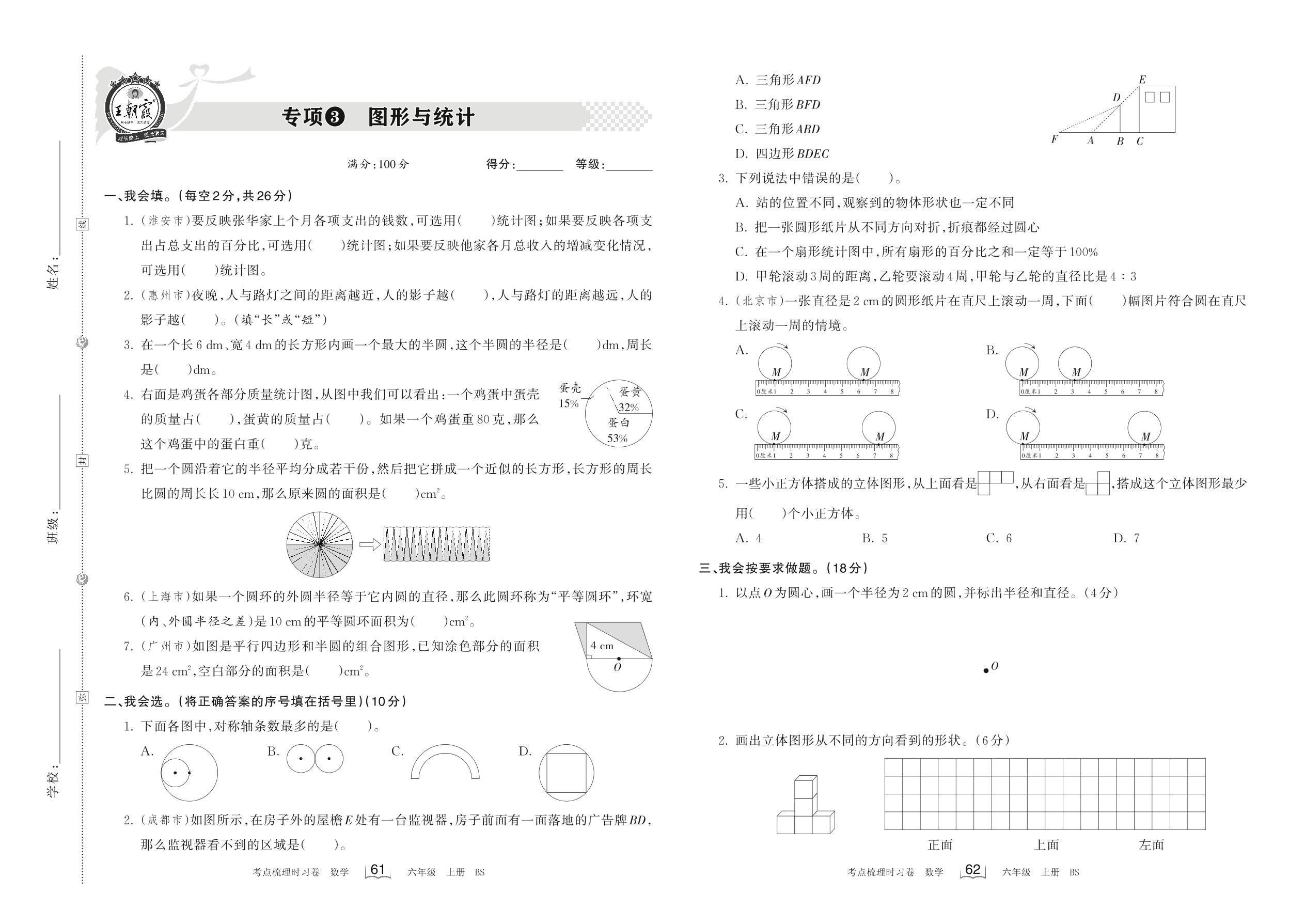 2022上册六年级数学北师版 专项3 图形与统计