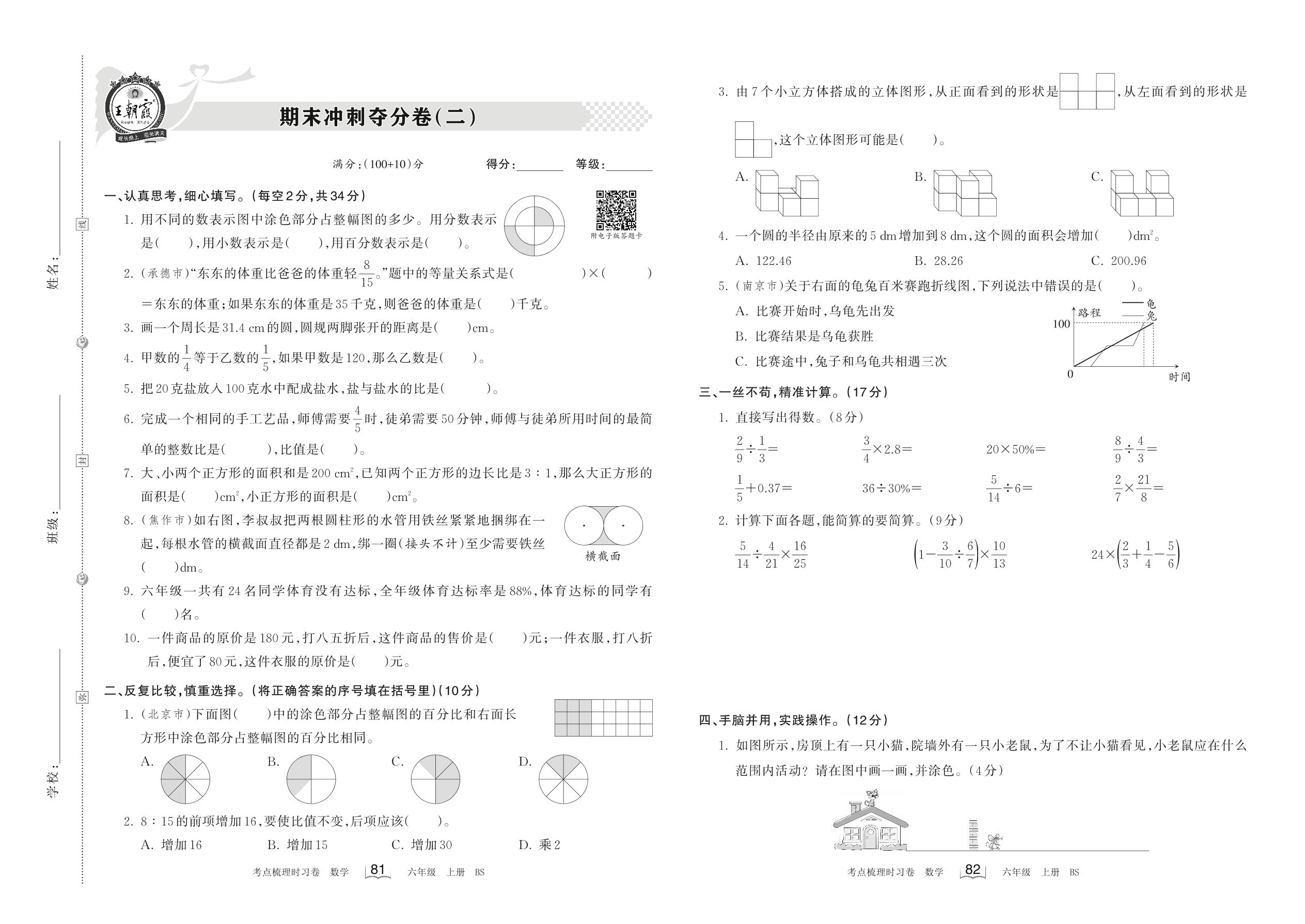 2022上册六年级数学北师版 期末冲刺夺分卷(二)
