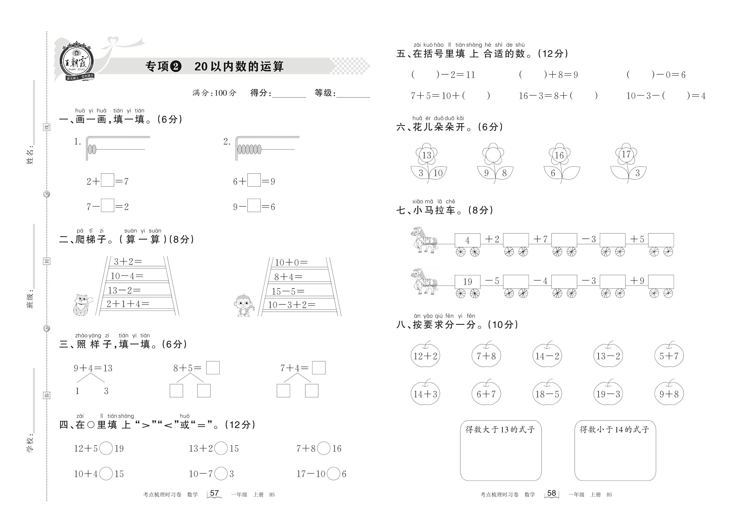 2022上册一年级数学北师版 专项2 20以内数的运算