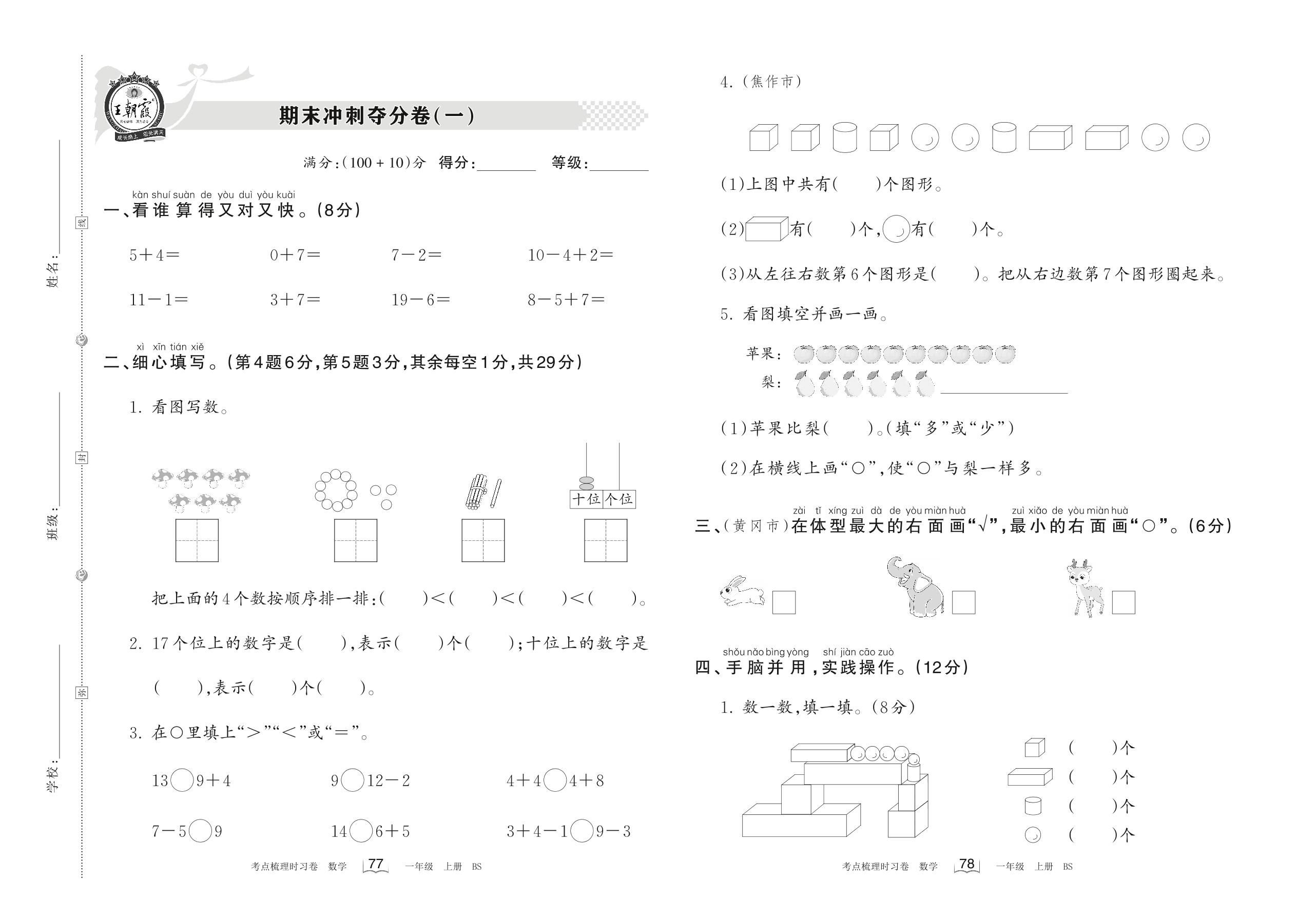 2022上册一年级数学北师版 期末冲刺夺分卷(一)