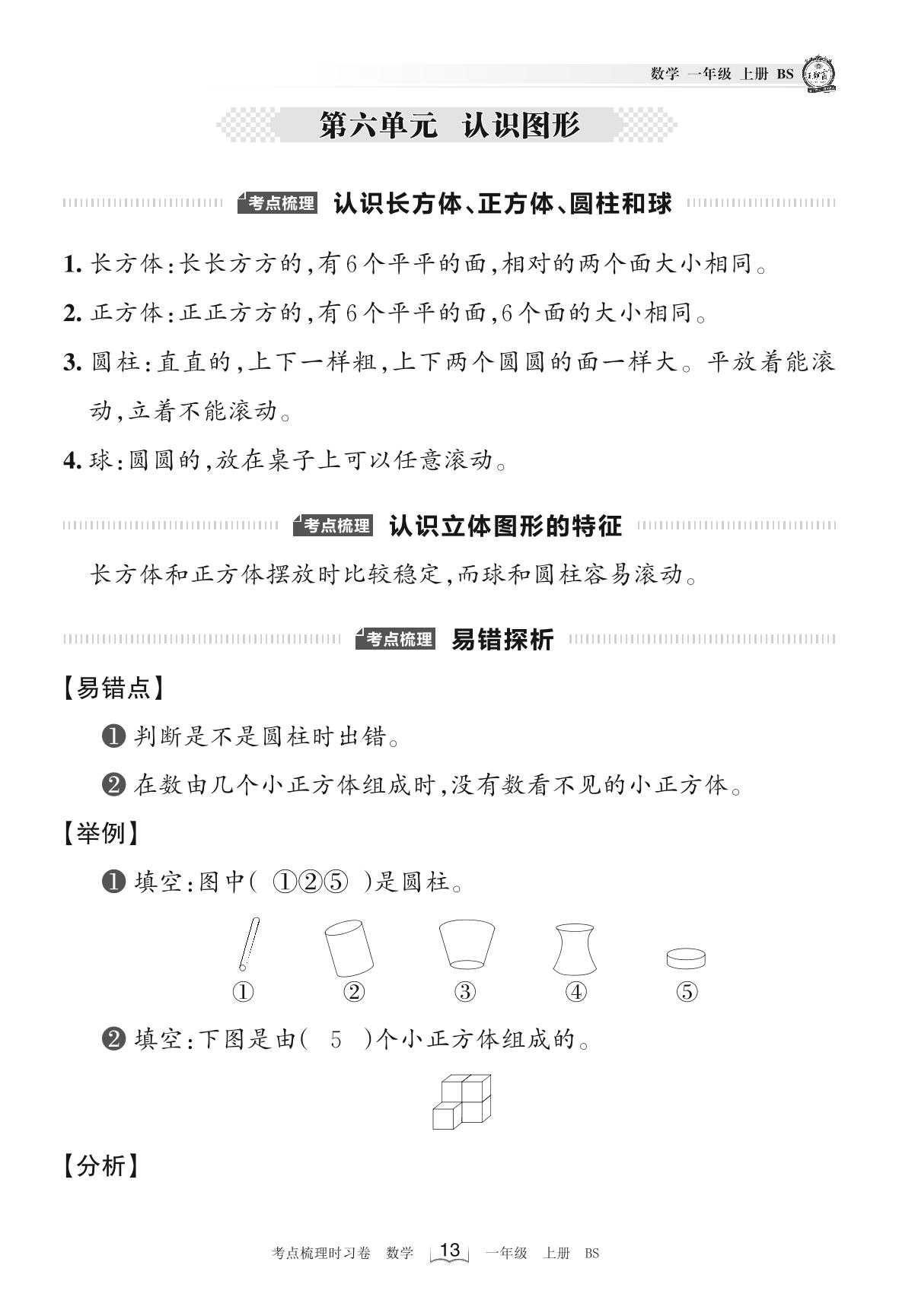 2022上册一年级数学北师版 考点梳理手册——第六单元 认识图形